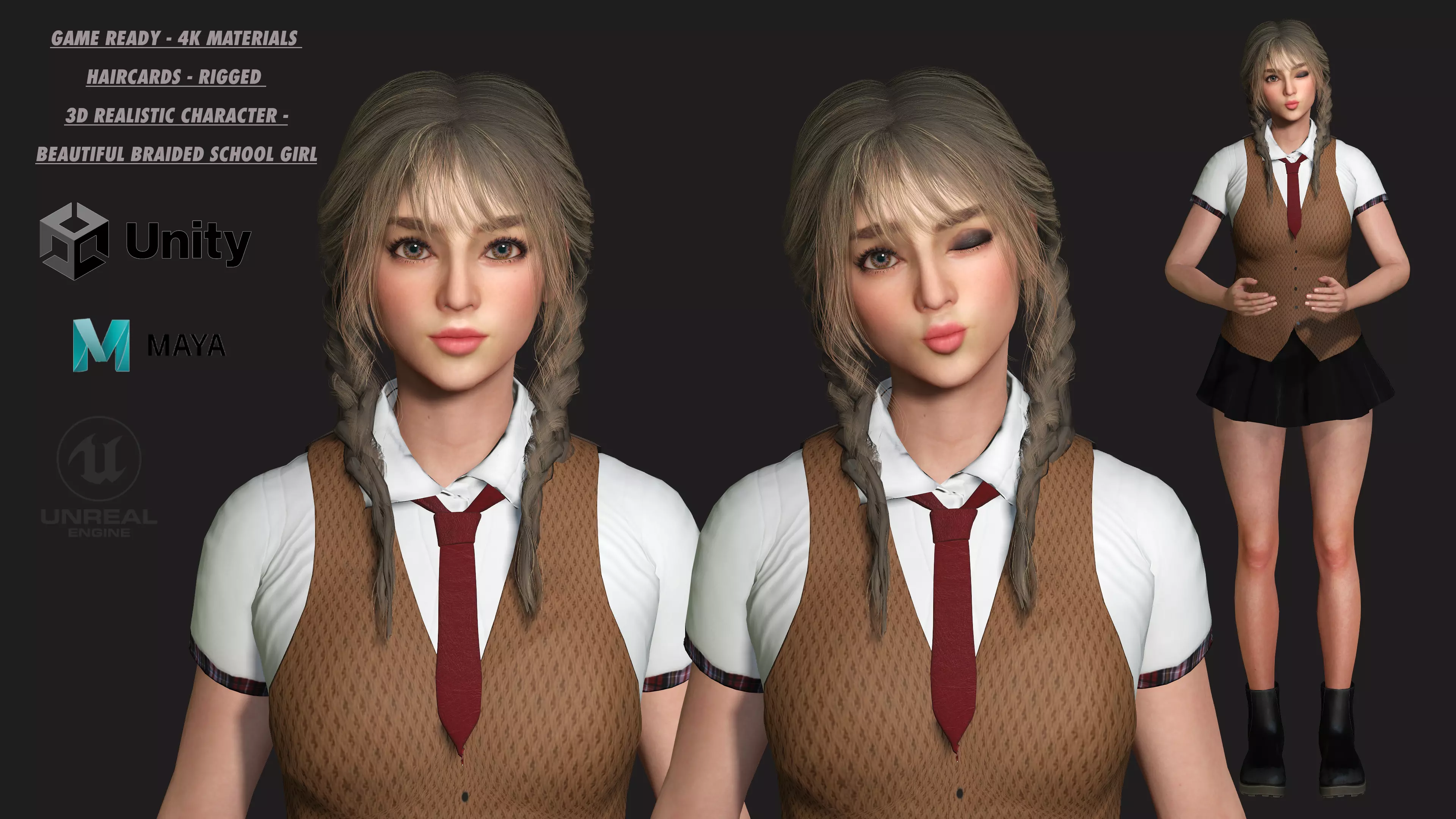 High-quality AAA game-ready 3D Female Character can be used for games, Animation Movie, Metaverse, VR/AR etc