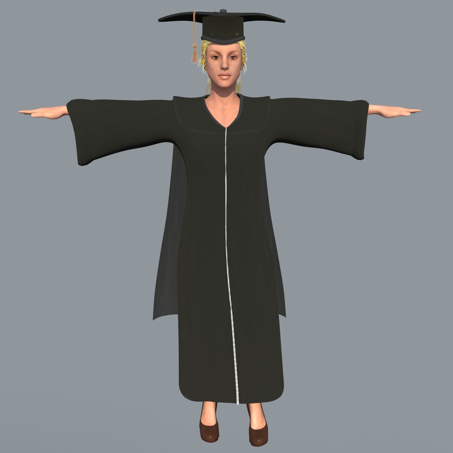 Academic Gown Female Graduate 3D model W Low-poly 3D model