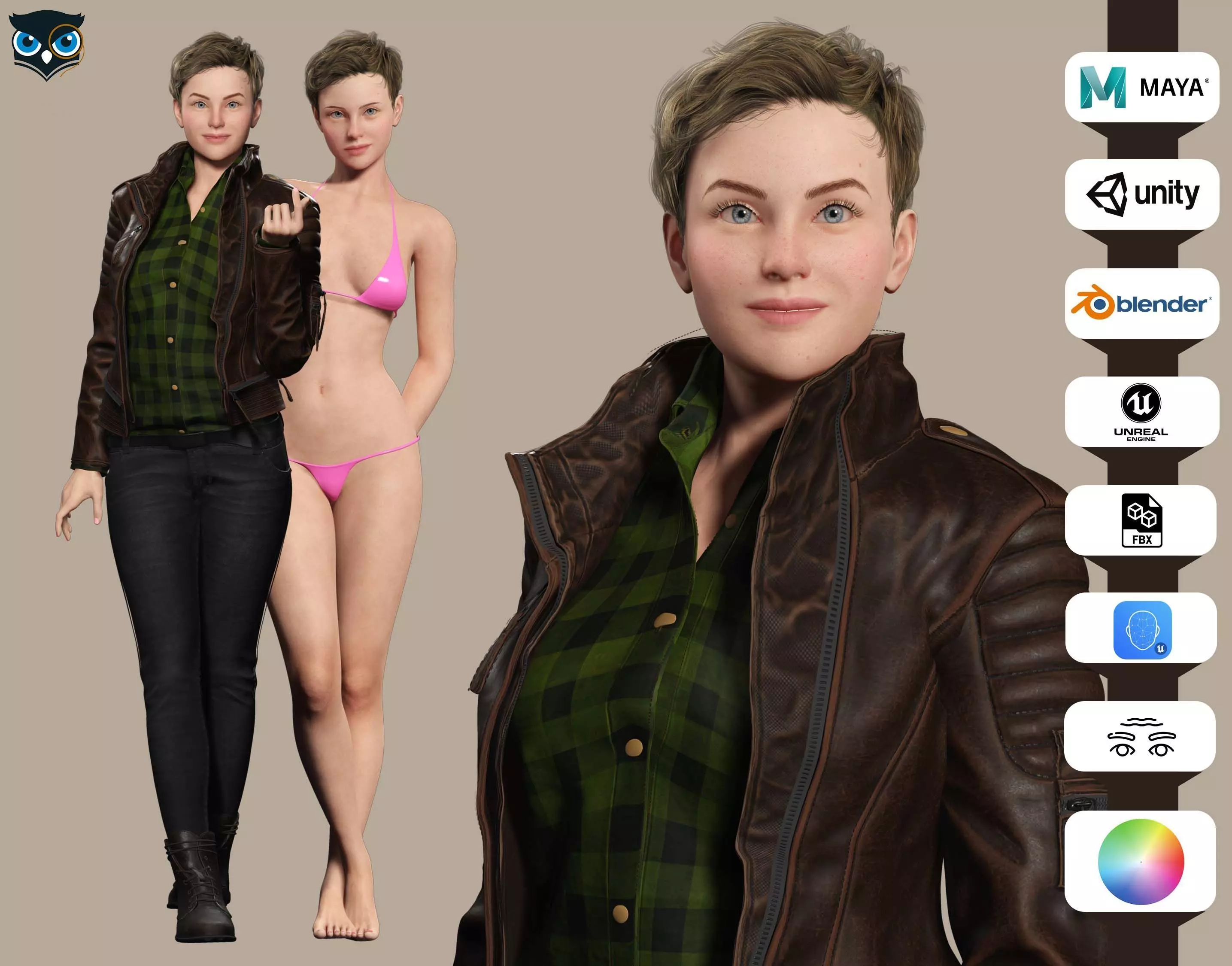 a stunning, fully rigged 3D model. This high-quality model is game-ready, low poly, and highly detailed, making it perfect for use in games, movies, animations, or as a base mesh for customization. The model Work with livelink with wrinkle map -We made a custom Hight quality shader with many variables of setting for unity, unreal and blender -We use standard material for maya (many renders engine in maya) you need to set up material for better quality manually. -unreal engine Skeleton -You gona get the model as preview image One of the standout features of this model is the full facial rig, complete with over 125 morph controllers, including tongue, lips, brow, blink, nose, flank, cheek, mouth, and more. Additionally, the rig includes an advanced skeleton, making it an excellent choice for animators looking to practice their craft. The model is fully customizable, with modular materials that can be adjusted to your liking, including settings for base color, AO, blend, displacement, glow, metallic, UV, normal, opacity, ORM, roughness, and specular. With more than six materials, including those for the eyes, nails, arms, and body, you have complete control over the look and feel of your character. But that's not all