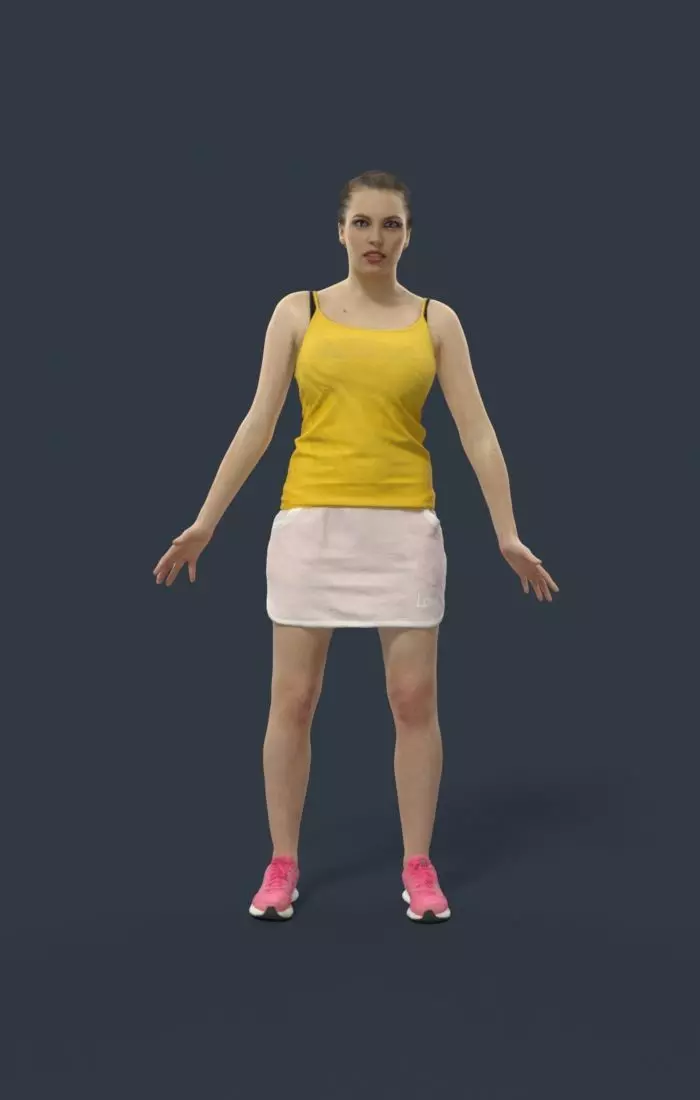 Woman Sport Animated in a skirt and tanktop - A-pose - Dream Low-poly 3D model