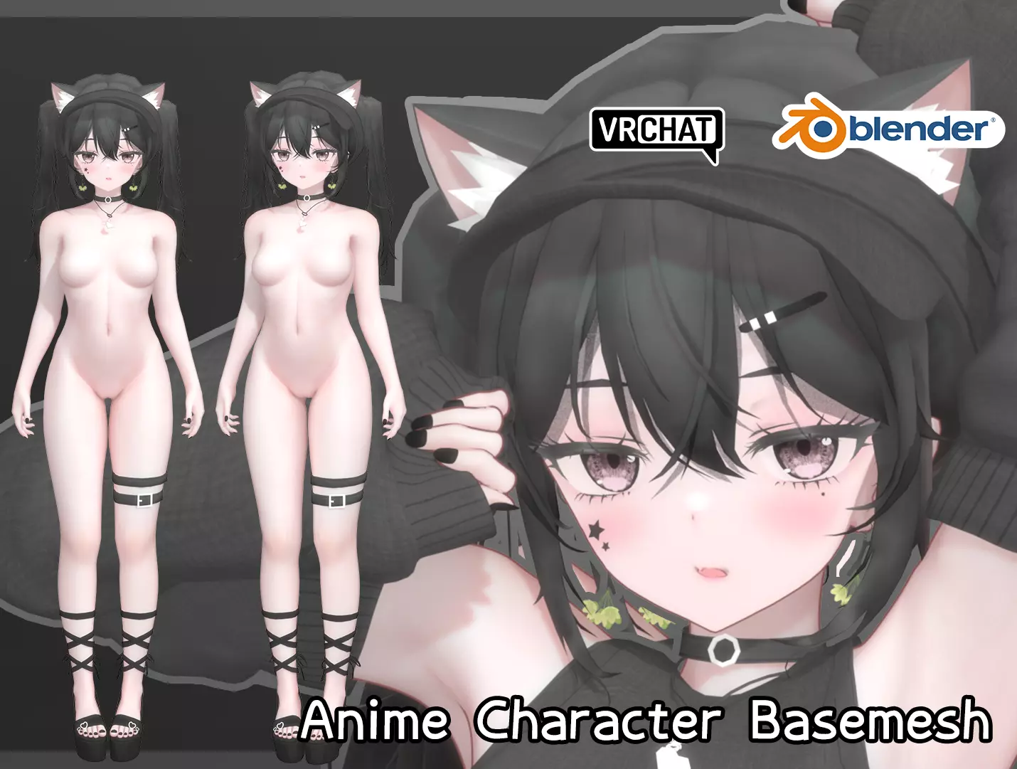 This anime-style character base mesh is designed for use in VRChat and for character creation in Blender. It can be used immediately as a VRChat avatar or as a foundation for creating your own original characters, edits, and outfit designs.
