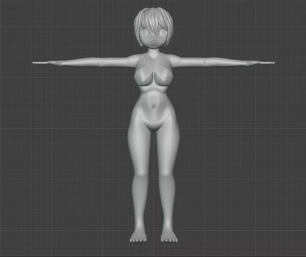 This is a stylized anime-inspired female character base mesh designed for 3D artists, game developers, and animators. The model is provided in T-Pose, making it perfect for rigging, animation, and further customization.