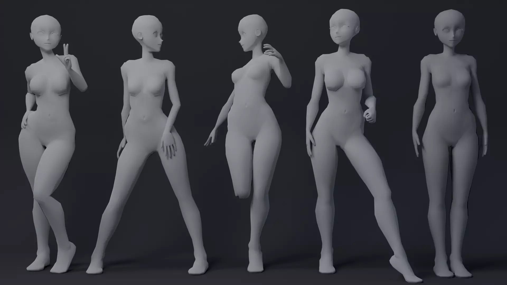 Lowpoly basemeshes, anime girls