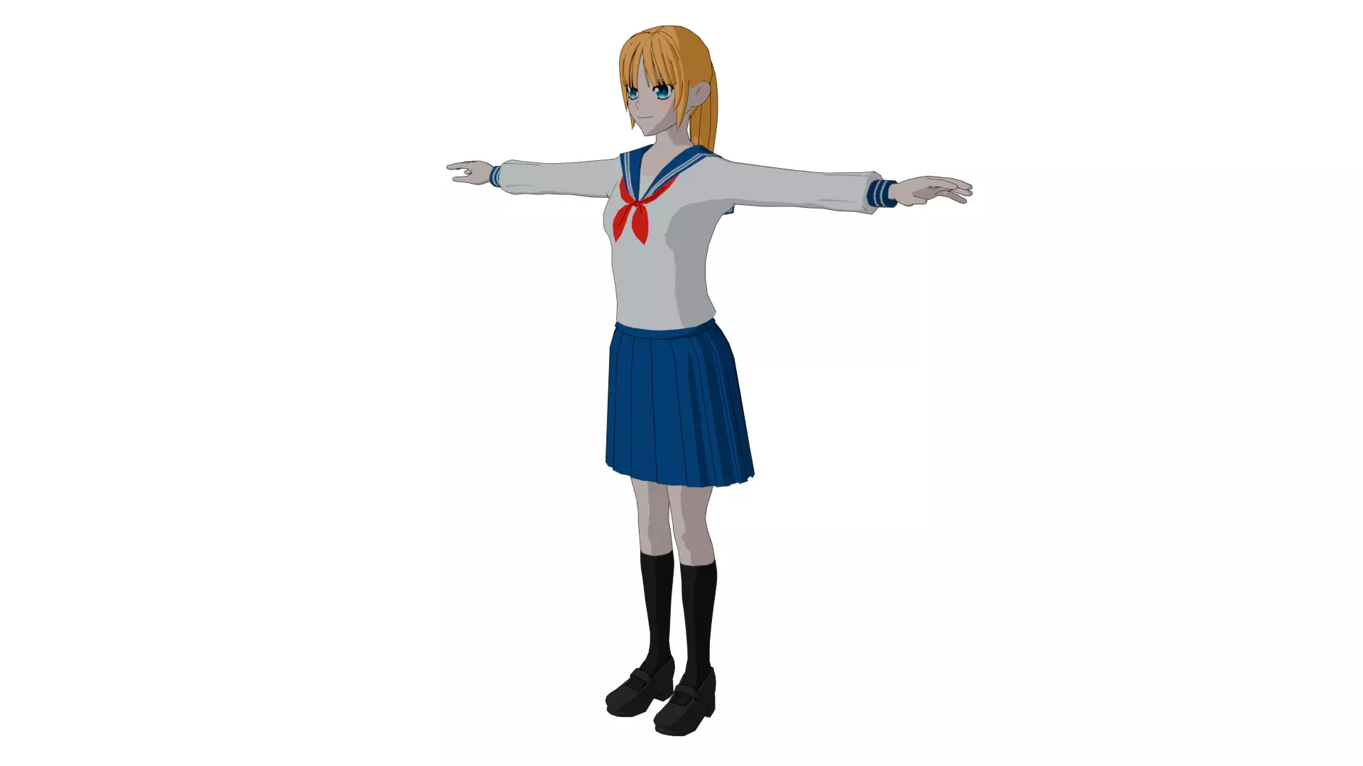 Collection of 3D school anime girls in their typical Japanese uniforms created in Blender. The preview shows the characters rendered in Evee using toon shader+freestyle outlines.