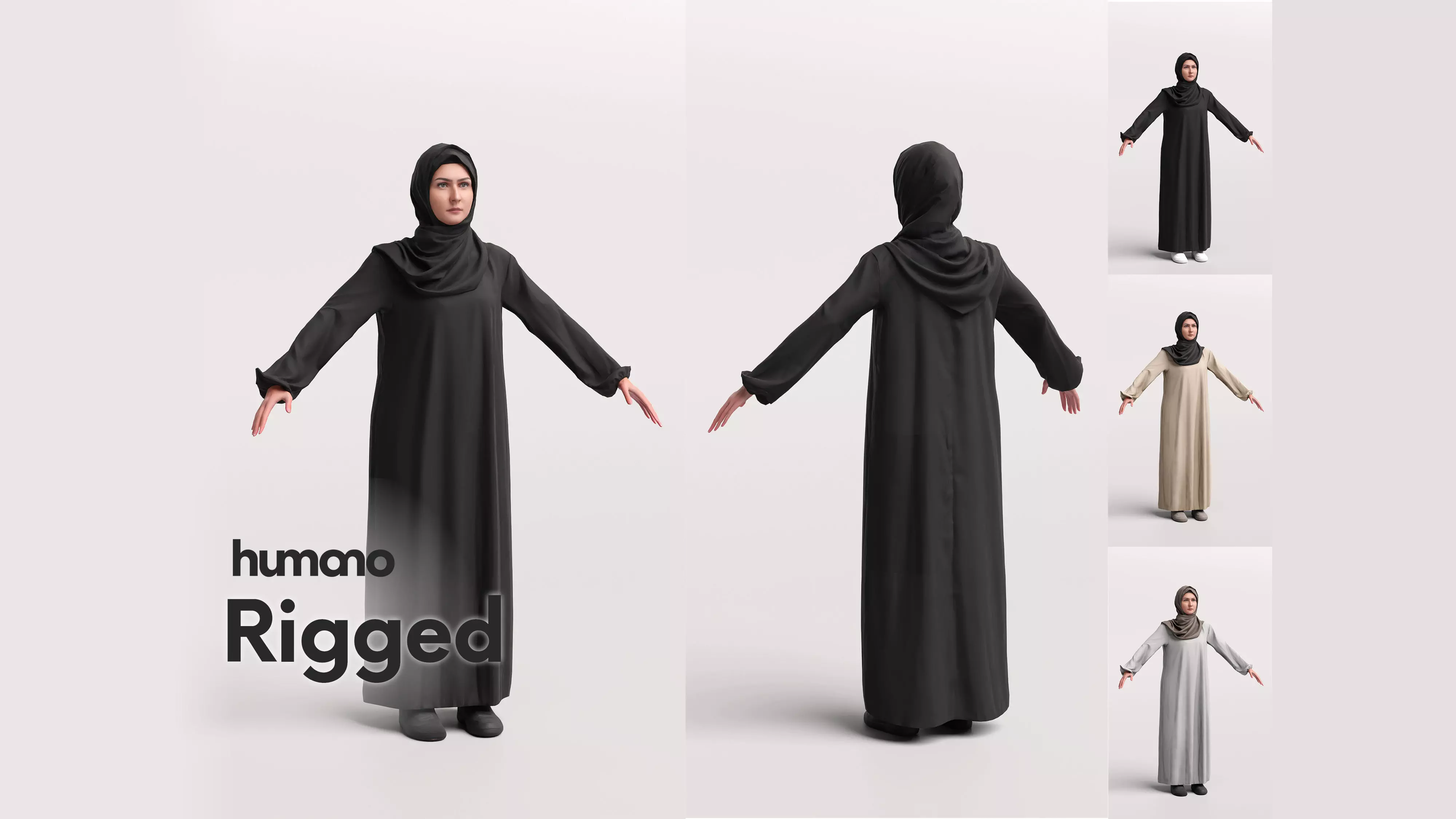 Arab woman rigged - different abaya hijab - 052-6464 Low-poly 3D model