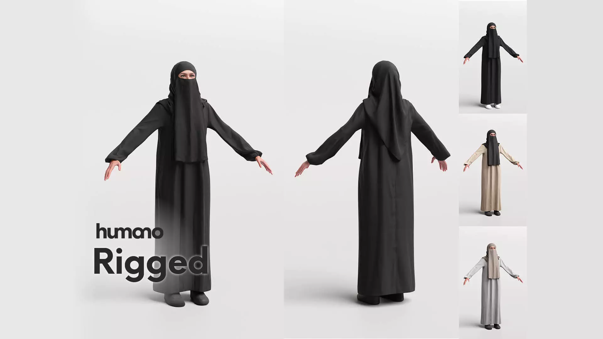 Arab woman rigged - niqab abaya hijab - 052-6525 Low-poly 3D model