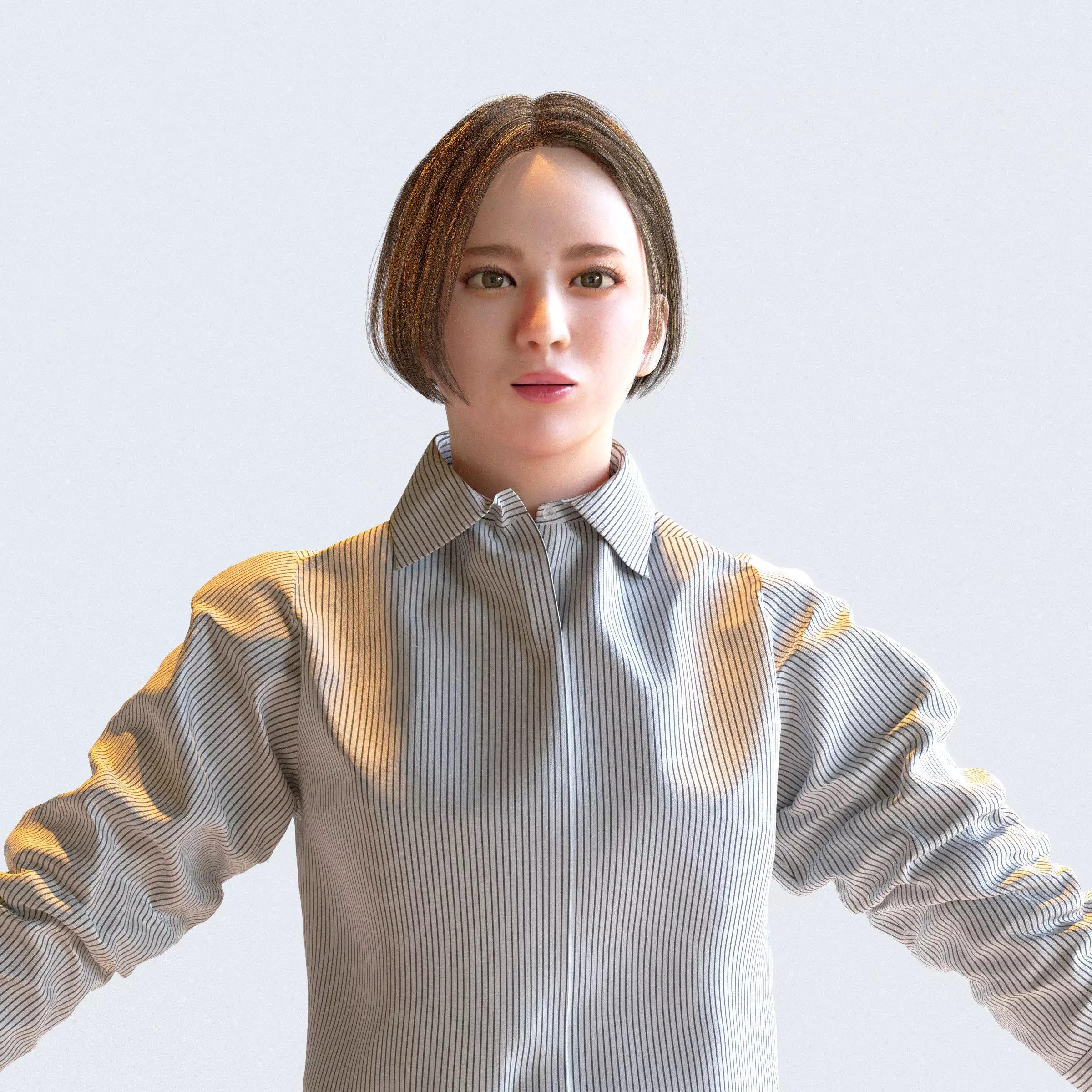 A-pose Asian Business Woman 3D models for architectural visualization scenes and CG projects.