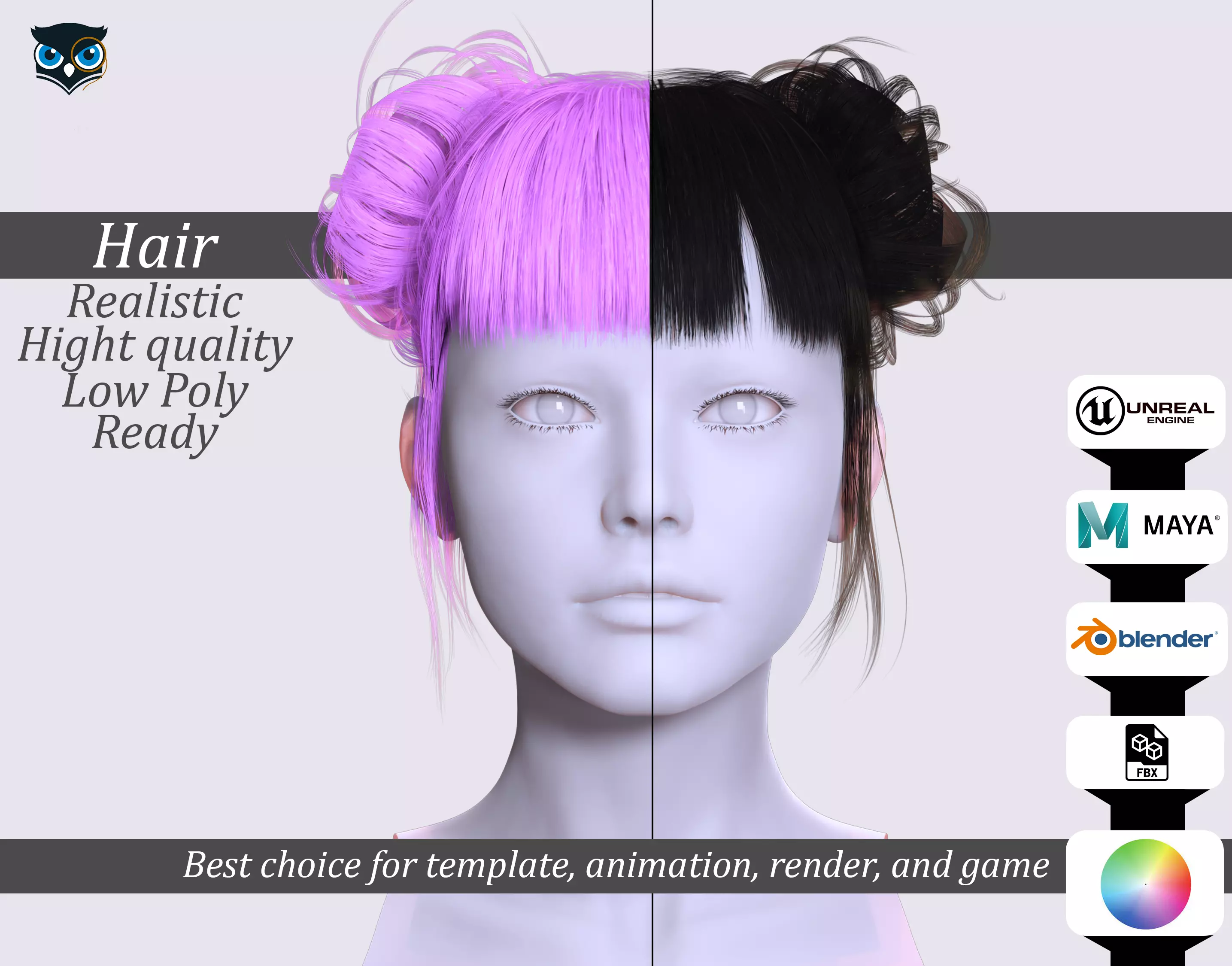 Whether you're a game developer, animator, or simply looking for a high-quality hair model, this product is perfect for you. Its low-poly design ensures optimal performance, and it's ready for use in both real-time games and high-quality rendering applications. So why wait? Download this model today and take your projects to the next level!