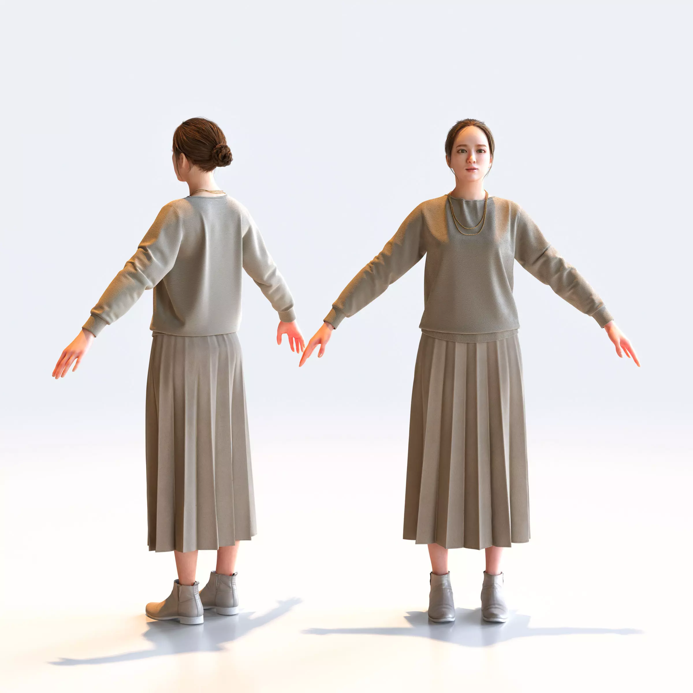 A-pose Asian Smart Casual Woman 3D models for architectural visualization scenes and CG projects.