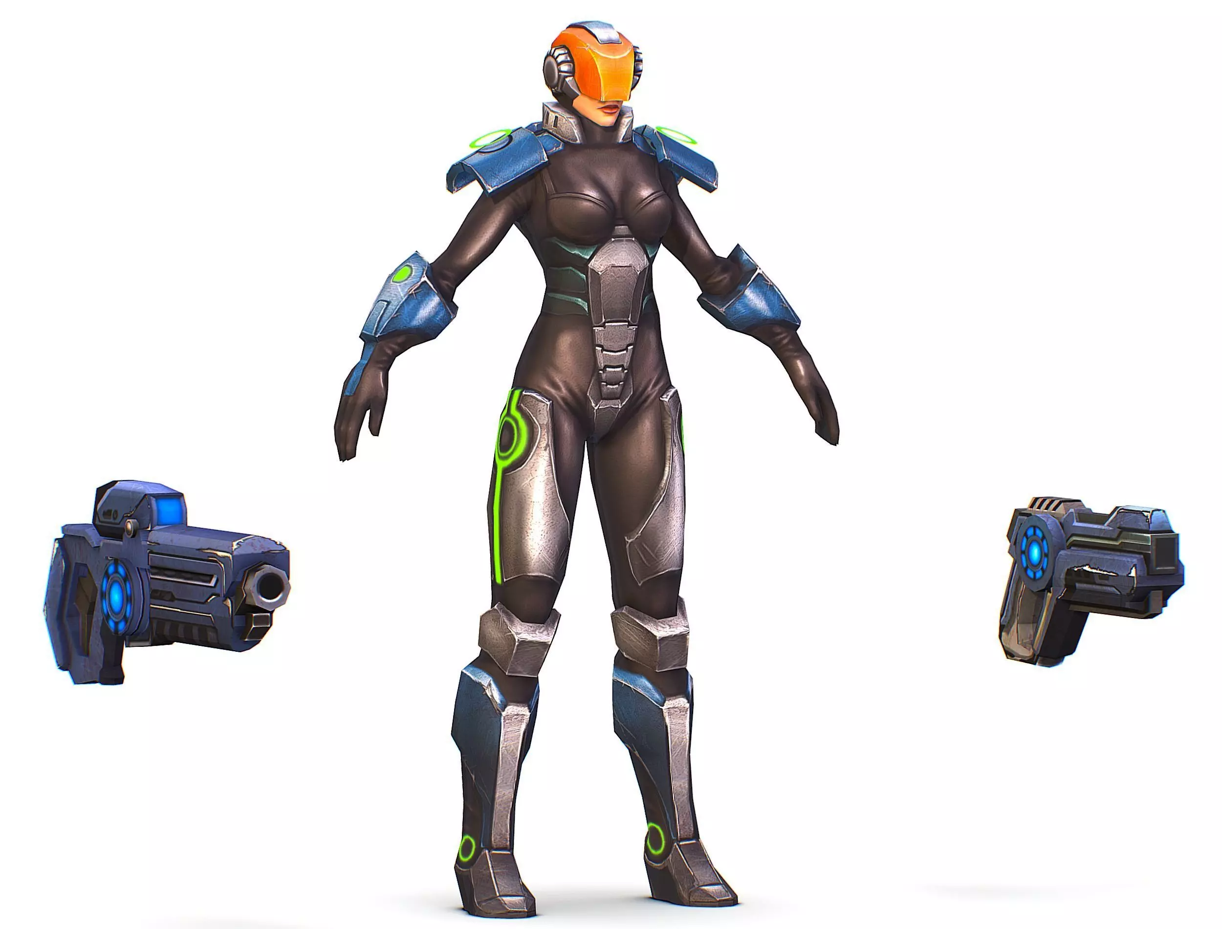 Woman Cyborg Soldier with Automatic Rifle and Pistol Low-poly 3D model