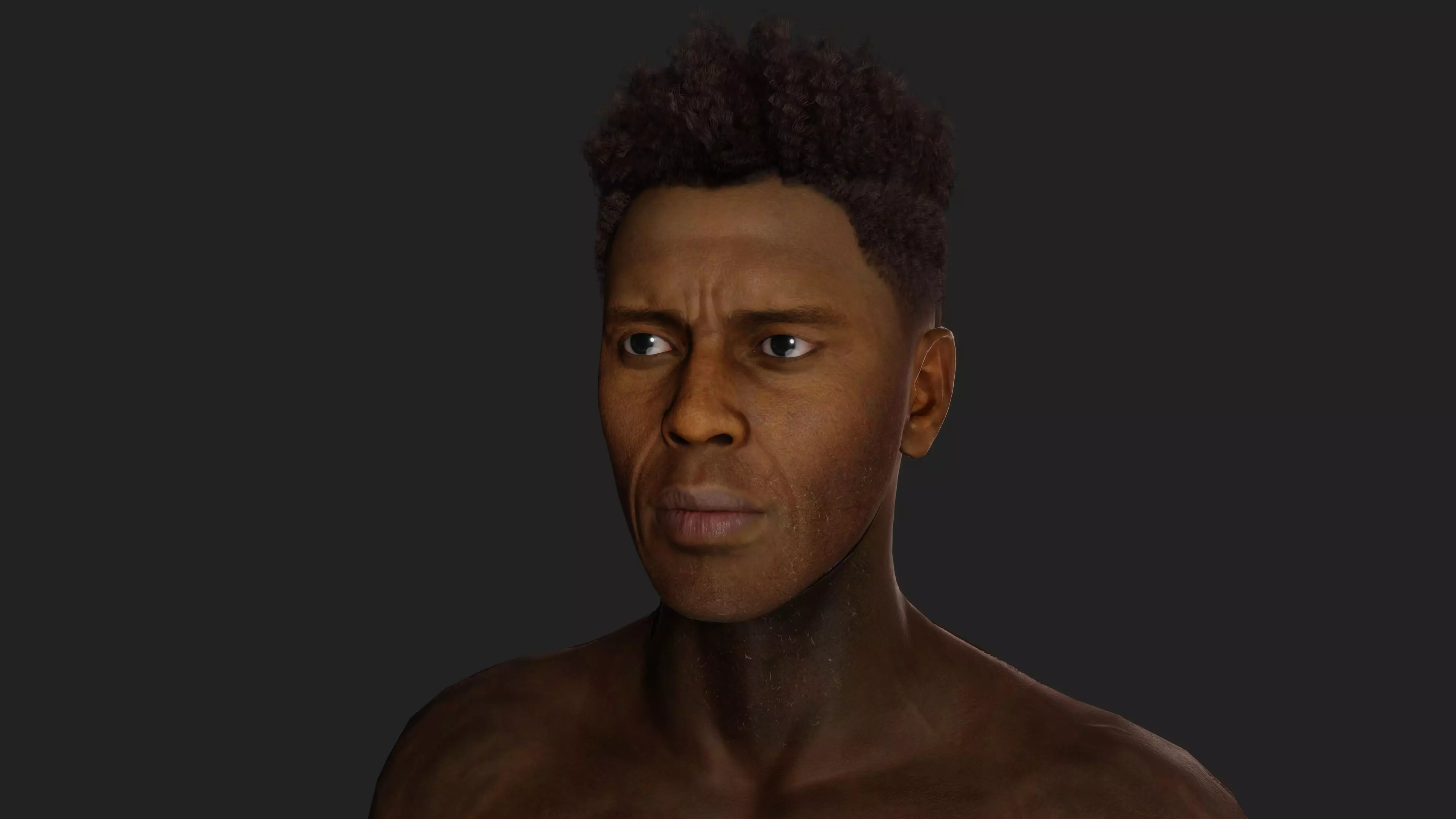 The attention to detail is impeccable, with each strand of the individual's black African hair meticulously designed to achieve a realistic and natural appearance. The facial features maintain a neutral expression, adding versatility to the model's applications in various projects. The focus on anatomical accuracy ensures that the model accurately reflects the nuances of the human form, making it suitable for a wide range of applications, from animation and gaming to virtual environments and fitness-related visualizations.