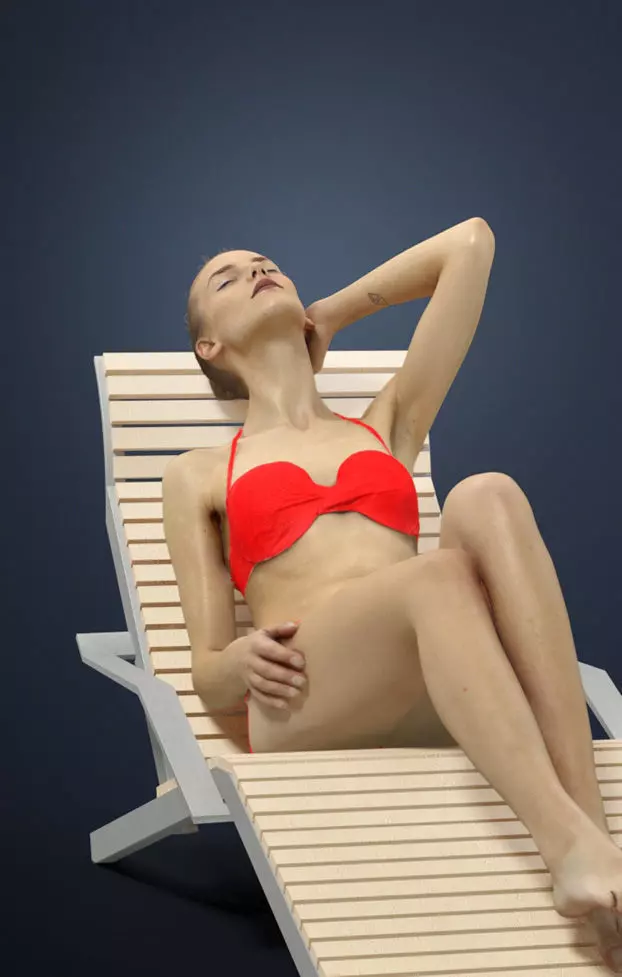 Beauty A Caucasian Female Laying On A Lounger In Her Red Bikini 3D model