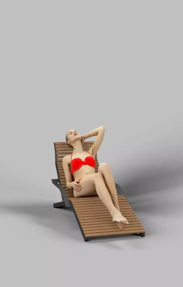 Beauty A Caucasian Female Lying On A Lounger In Her Red Bikini Low-poly 3D model