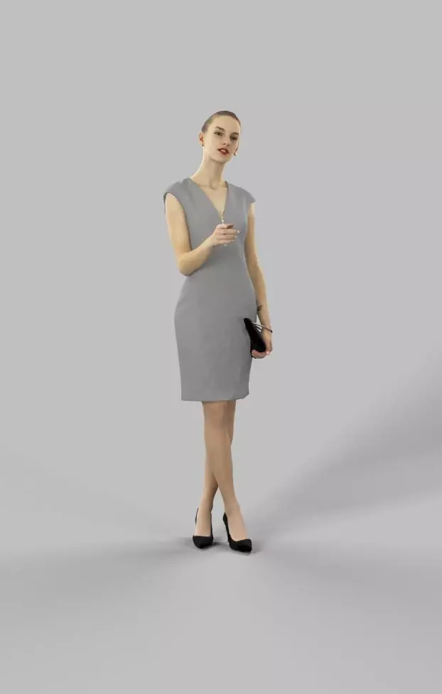 Beauty an Elegant Woman In Business Attire Standing Pointing Low-poly 3D model