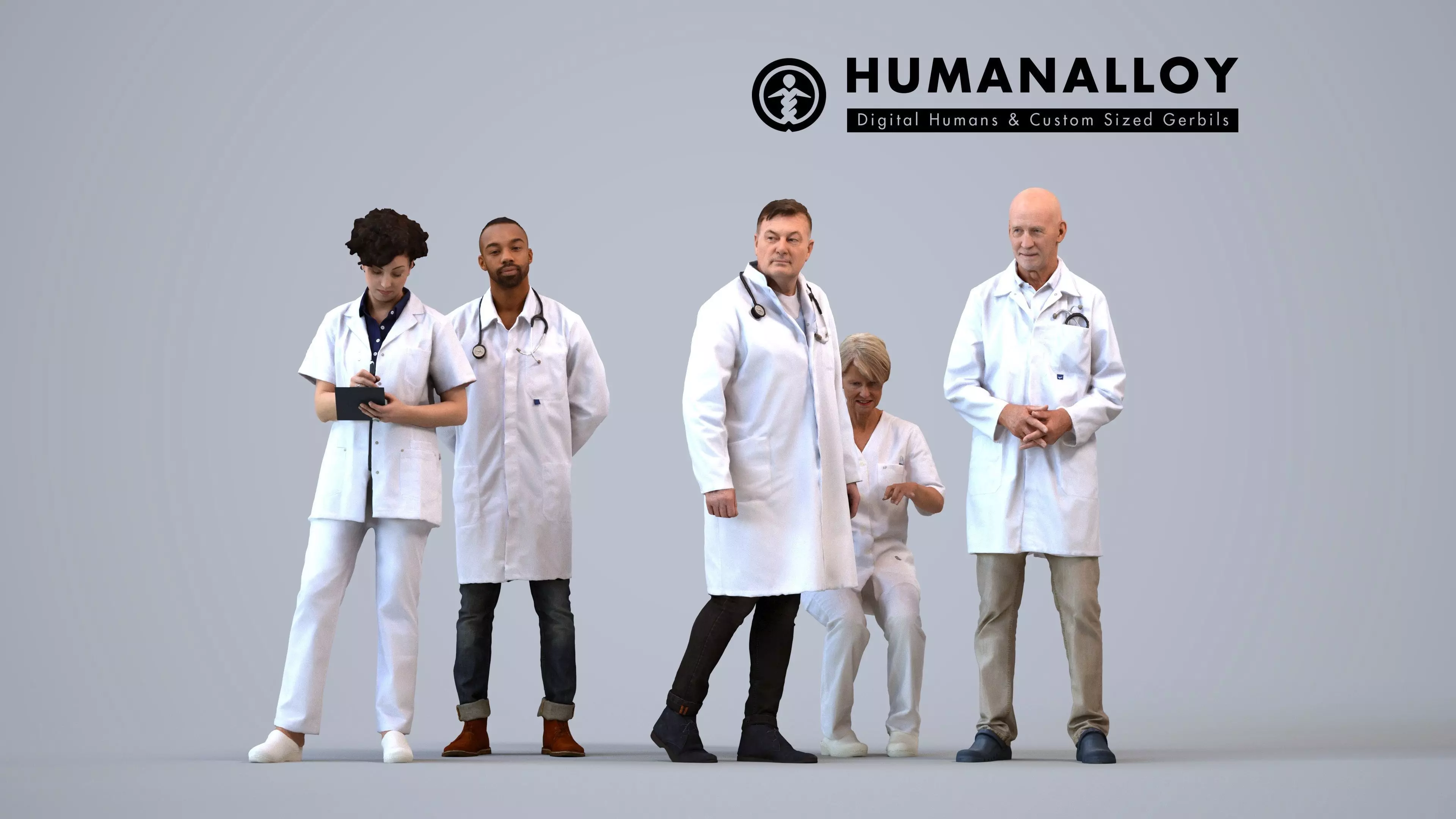 A set containing 5 models of male and female adults standing in the medical profession. Doctor and nurses.