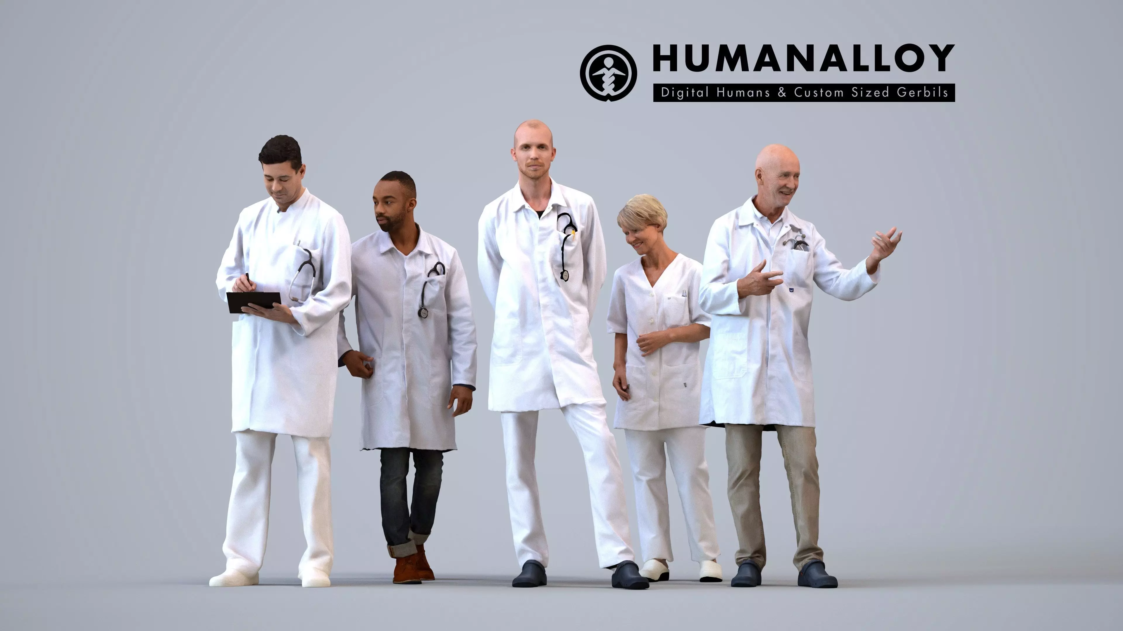 A set containing 5 models of male and female adults working in the medical profession as doctor and nurse.
