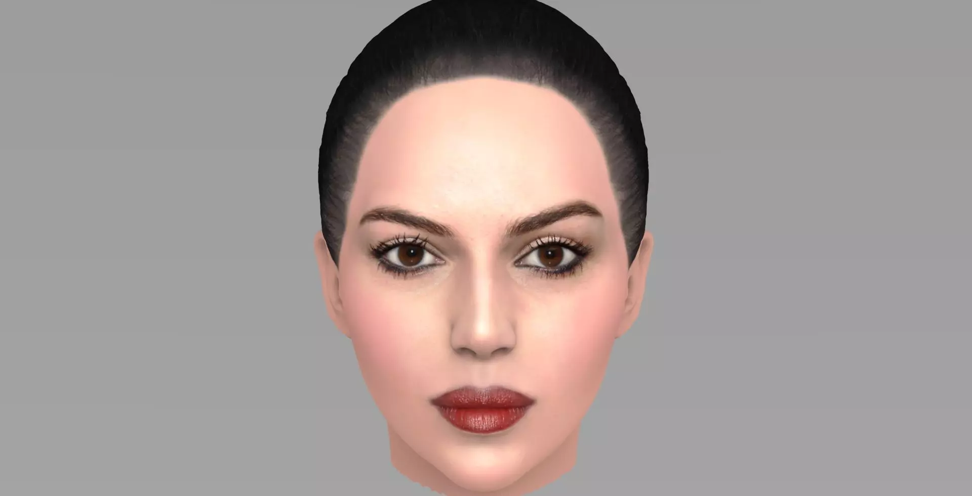 Here is a head 3D model of an attractive brunette woman ready that I separated from 3D printable model. The model has UV map generated in ZBrush. The topology is pretty standard, from Decimation Master as you can see on the renders. The Zip file contains obj and wrl with texture in png.