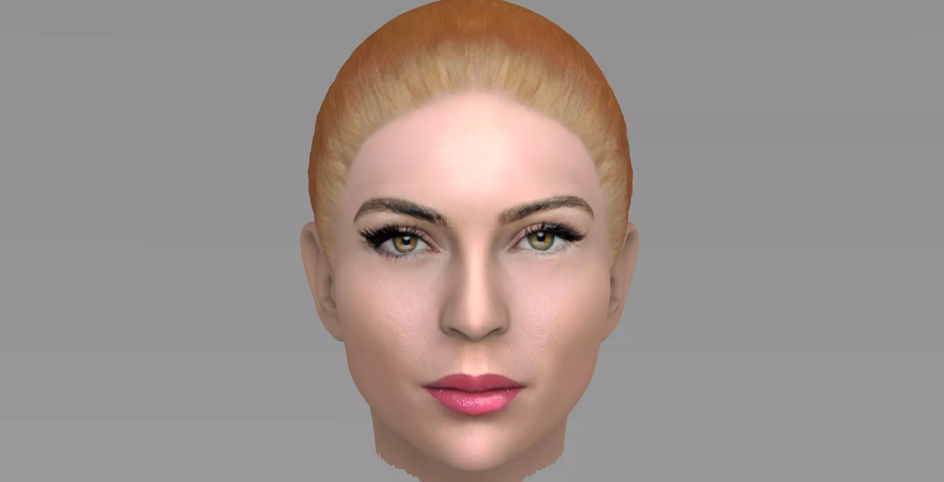 Here is a head 3D model of an attractive redhead woman ready that I separated from 3D printable model. The model has UV map generated in ZBrush. The topology is pretty standard, from Decimation Master as you can see on the renders. The Zip file contains obj and wrl.