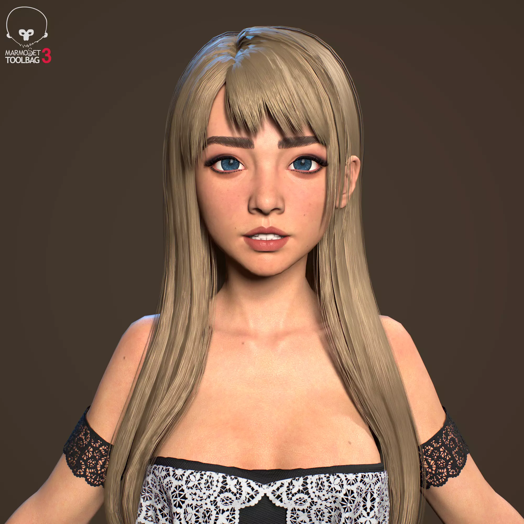 Woman real-time, virtual reality 3D Model. Rendered in marmoset toolbag 3.08 and blender 3.2.