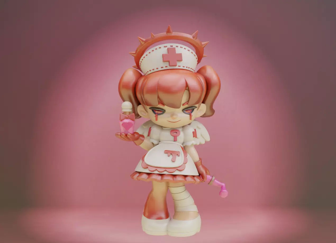 Bring a touch of captivating intrigue and dark whimsy to your projects with this meticulously crafted 3D model of Blood Angel from the Yandere Girls Remove The Label Series, designed as a striking collectible art toy. This stylized anime-inspired figure masterfully blends adorable nurse aesthetics with a unique, unsettling charm, characteristic of the series.