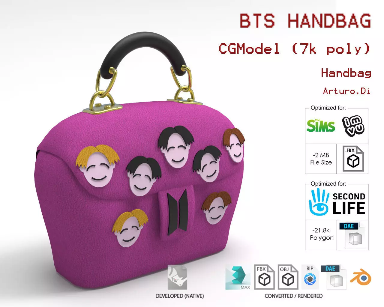 The designer indicates this model is intended for digital use only (rendering, animation, or AR/VR) and not for 3D printing.