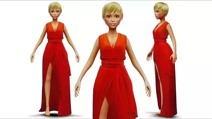Long Evening Dresses - Elegant Gown - Young Woman Formal Clotch 3D model