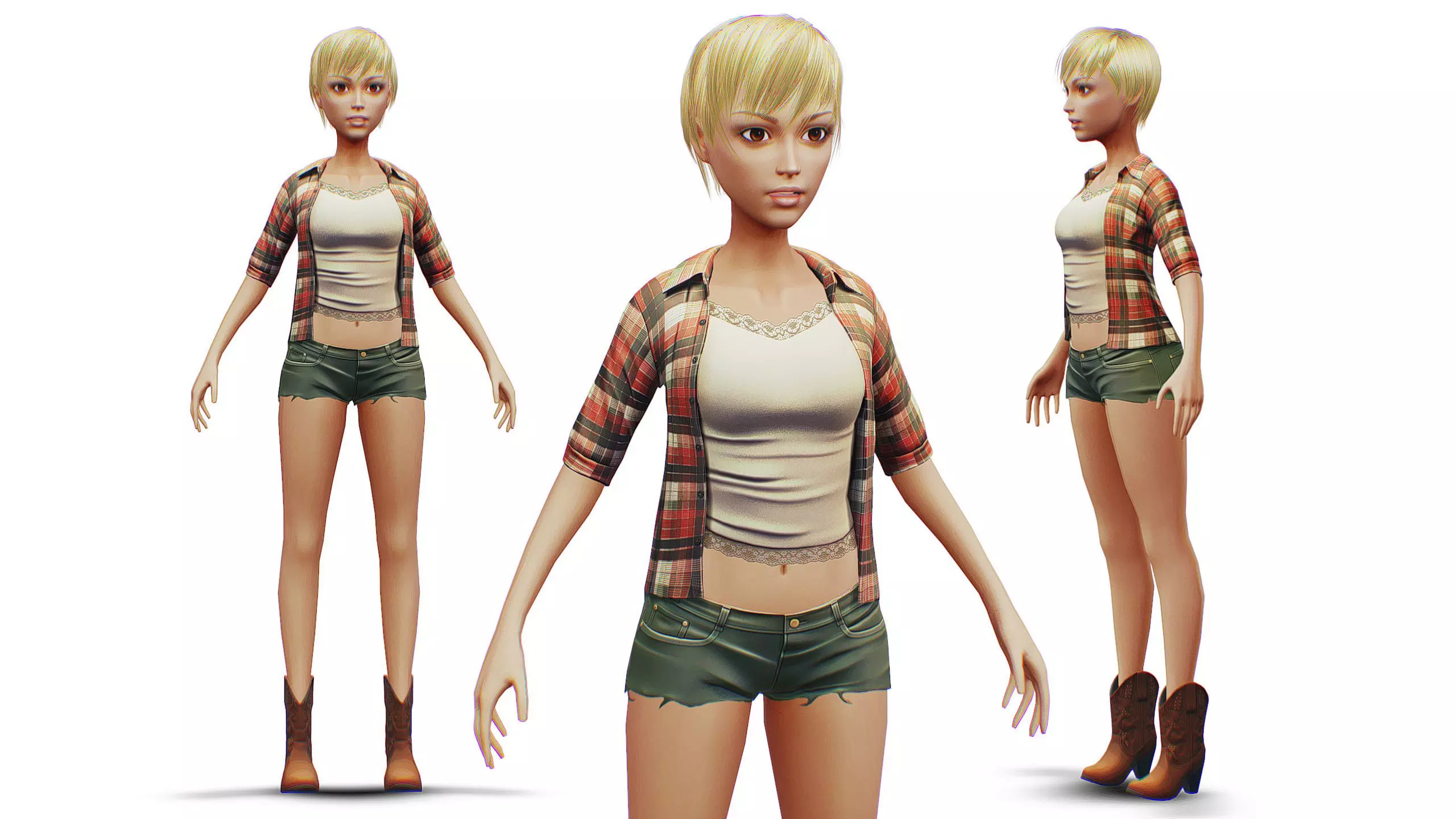 Cowgirl Woman Outfit - American Rural Girl - Boots - Plaid Shirt Low-poly 3D model