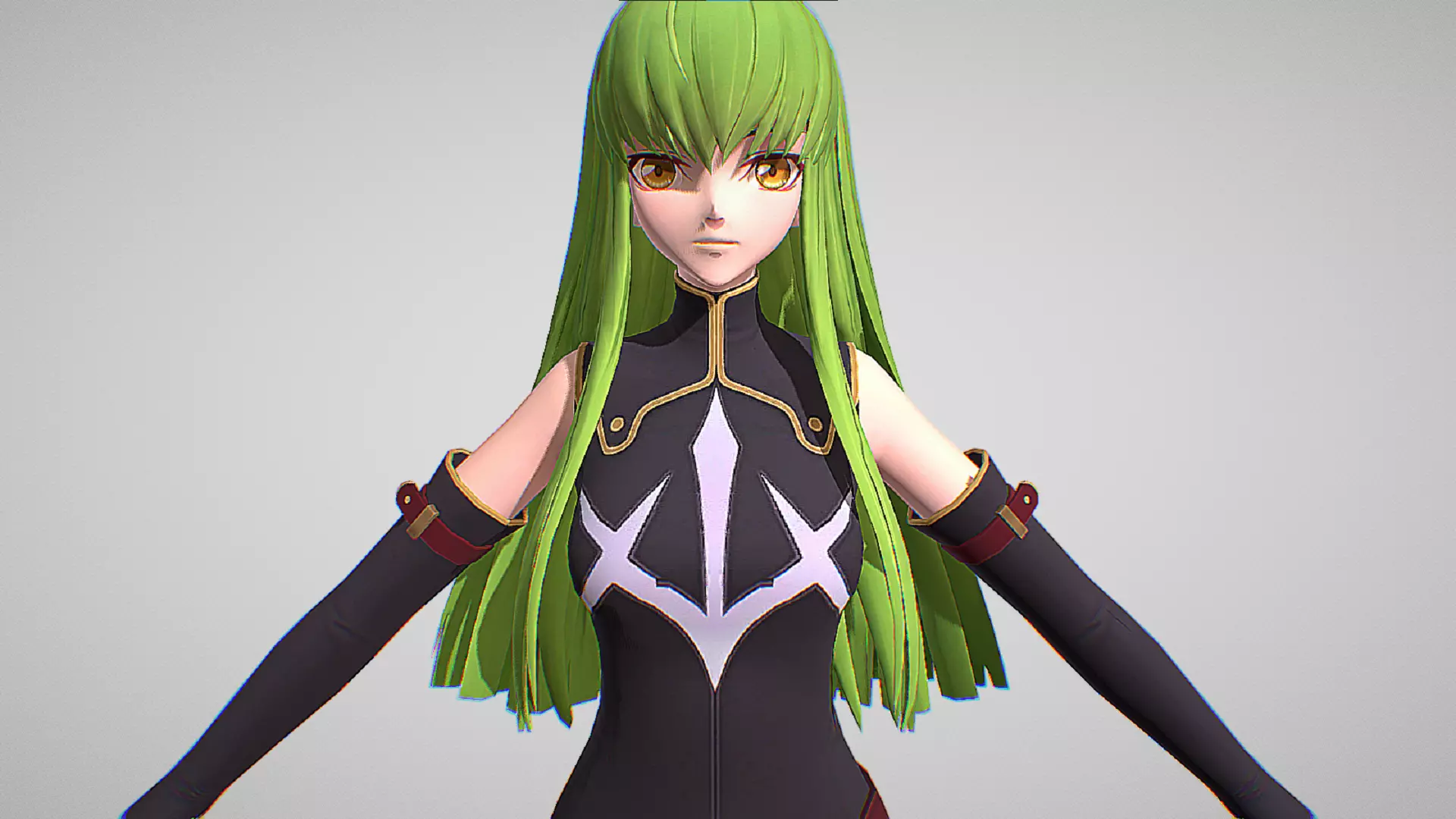 C.C. (シーツー Shītsū), pronounced C2, is one of the main characters of Code Geass: Lelouch of the Rebellion. She was the leader of the Geass Order before disappearing due to the murder of Marianne and the leader of the Order of the Black Knights until she returned Lelouch's memories. She was also the one who gave Geass to Leila Malcal and Lelouch.Her Japanese voice actress is Yukana while she is voiced by Kate Higgins in the English dub. C.C. is not her real name; she involuntarily reveals her real name to Lelouch in her sleep, but it is muted so the viewers cannot hear it.
