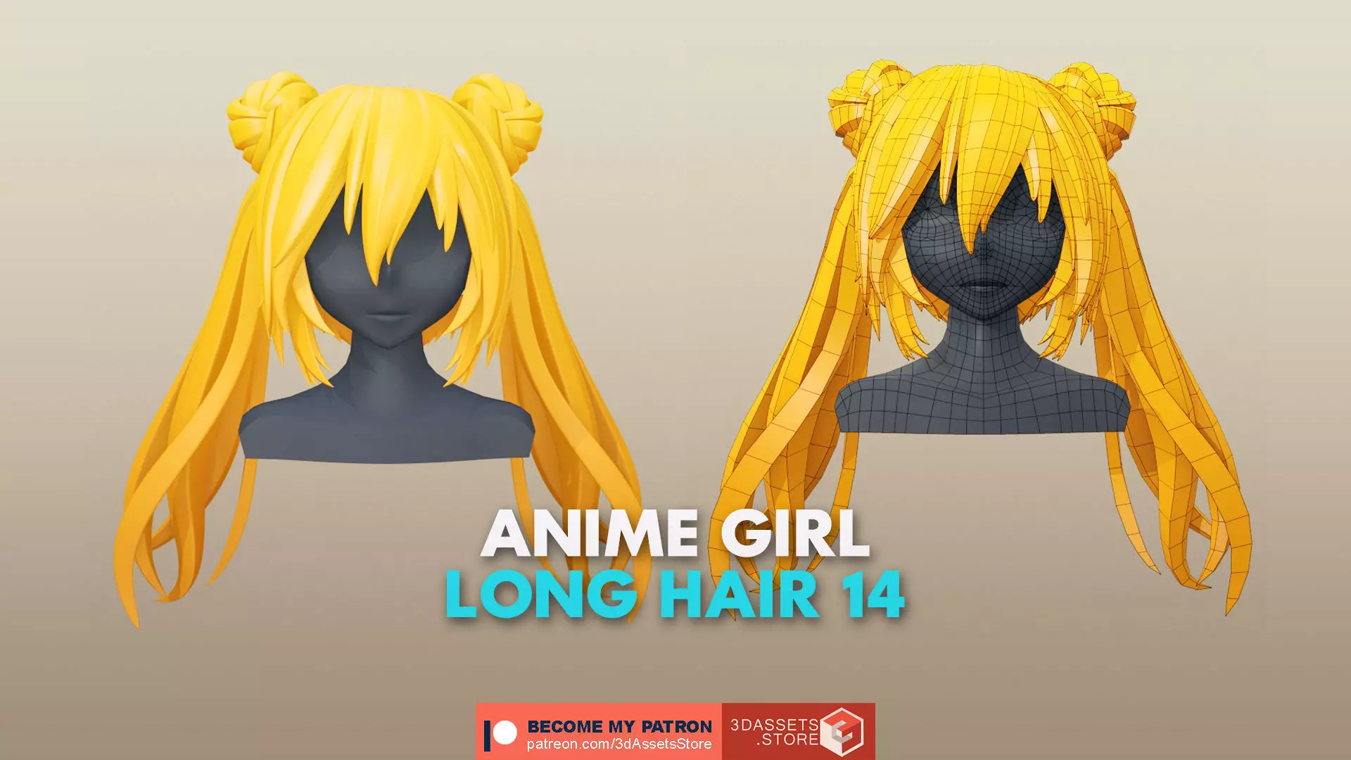 • This model included Girl Long Hair 14 low poly, and high poly with Crease Edge in Maya files, no UVs.