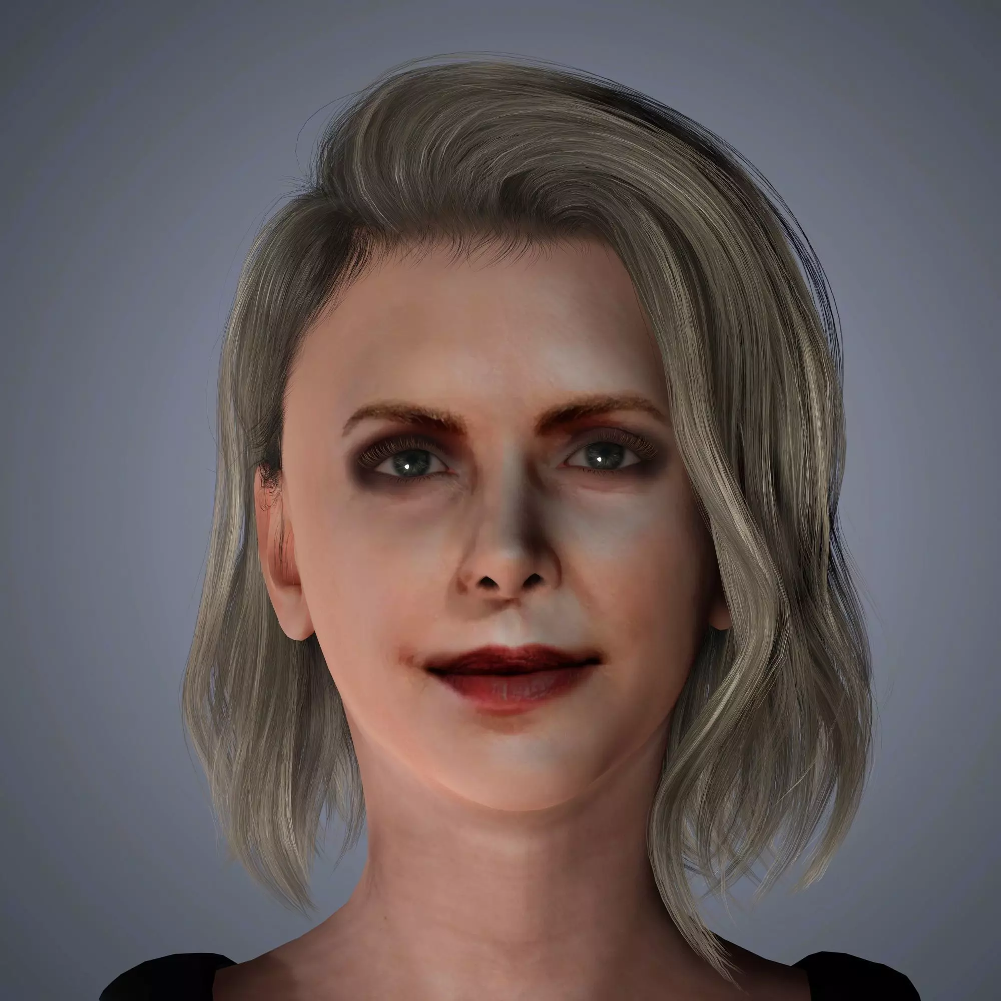 The 3D model of Charlize Theroncharacter can be downloaded in the following formats:fbx ma mb obj cc4 blender I hope you enjoy my model.