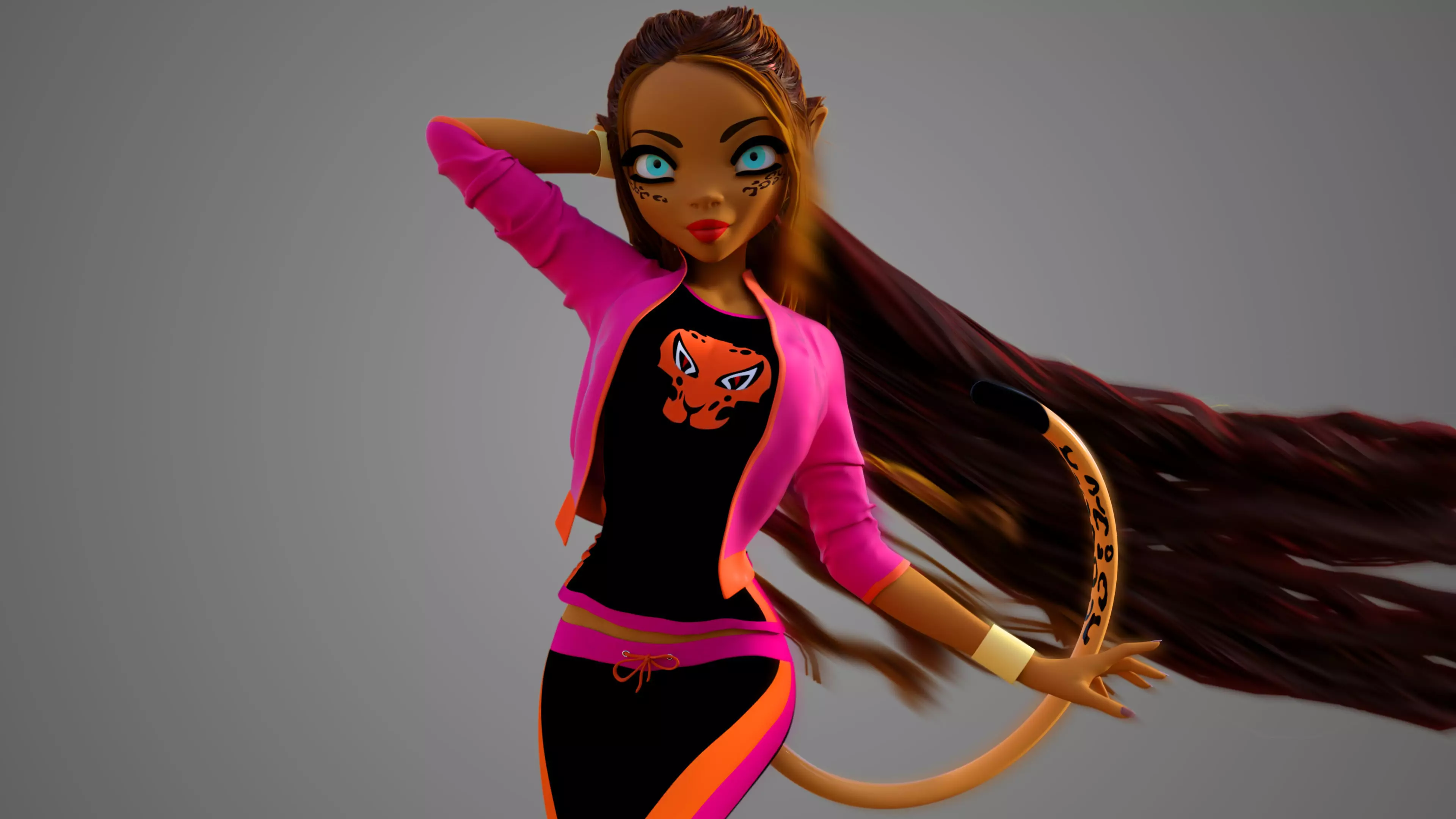DC Super Hero Girls is an American superhero web series and franchise created by Warner Bros. Consumer Products and DC Entertainment that launched in the third quarter of 2015. Cheetah, real name is Barbara Ann Bobby Minerva, is a supporting character in the first generation of the DC Super Hero Girls franchise. She is a dishonest, anti-heroic student at Super Hero High School and Wonder Woman's arch rival. Like her name, she resembles a Cheetah. She has tan fur, long brown hair that reaches down to her ankles, a tail that reaches the floor, and pointed ears. She has gray-blue eyes and spots on her cheeks and shoulders. She wears pink blush, orange eye-shadow and pink lipstick. She wears a pink sweatshirt with an orange collar and sleeve cuffs, a black tank top with pink borders and a cheetah face design, black and pink capris and orange sneakers with white laces and black cheetah prints on the toe area. She also has simple gold bracelets.