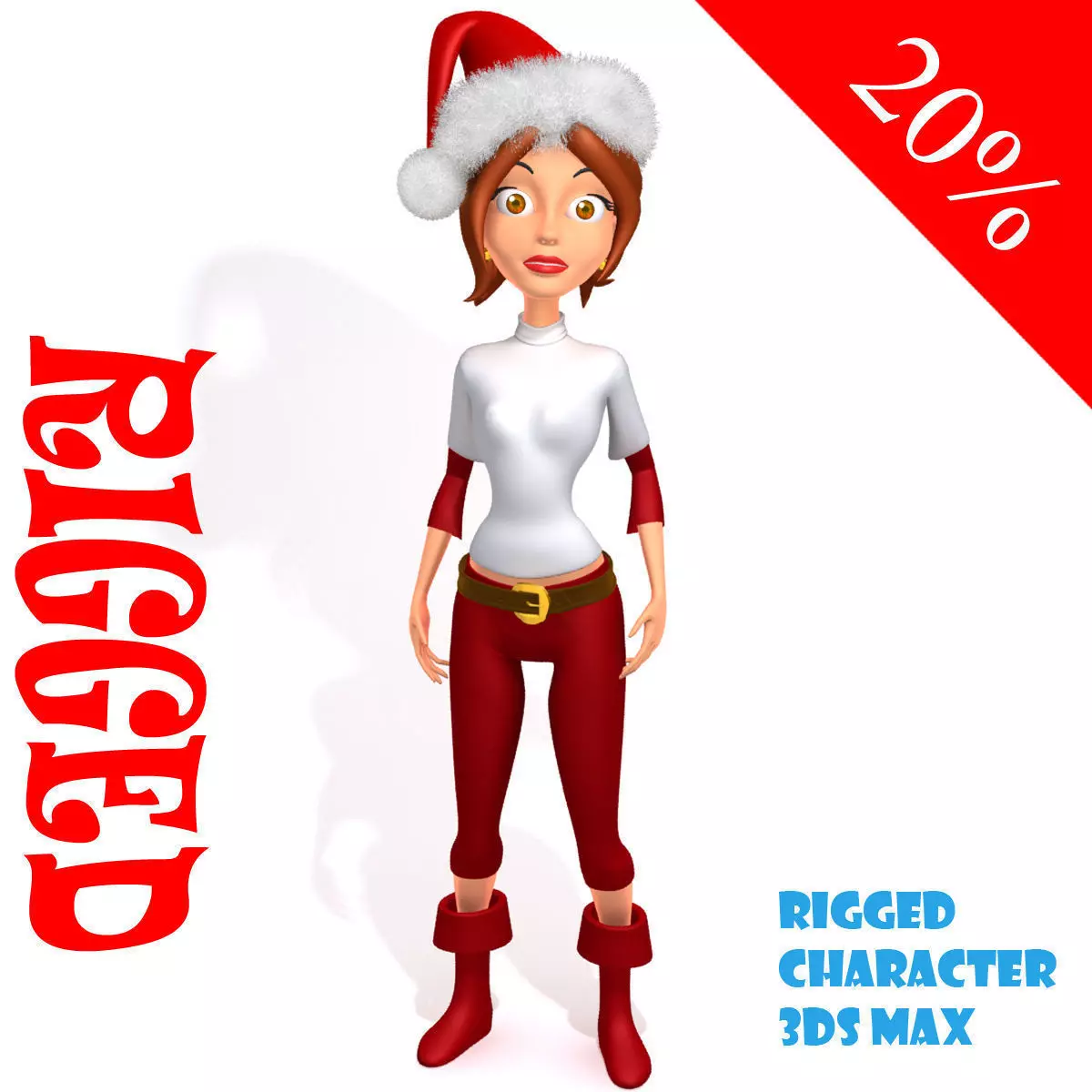 Features:-Cute Christmas girl , ready for close up and HD renders.-High quality polygonal model, correctly scaled for an accurate representation of the original object.-Model’s resolutions are optimized for polygon efficiency. (In 3ds Max, the Meshsmooth function can be used to increase mesh resolution if necessary.)-Created with 3DSMax 2013 but available in a lower version and OBJClean mesh edge loopsOnly quadObjects, Materials and Textures use descriptive and unique namesScene objects organized by layers.-All colors can be easily modified.-Model is textured with all materials applied.-No cleaning up necessary—just drop your models into the scene and start rendering.-No special plugin needed to open scene.-Ready for rendering in 3ds max 2013 Mental Ray.-Rigged Biped 3ds max 2013-File contains Apose