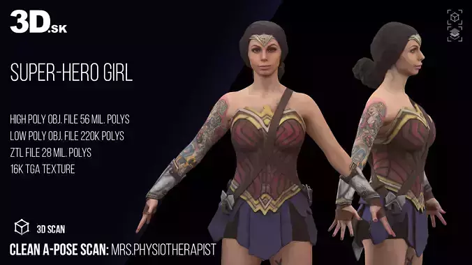 High-quality 3D clean scan of the phenomenal heroine, combining the appearance of divine beauty with uncompromising strength and determination. With long, lustrous hair and eyes that shine with courage, she radiates strength and confidence into the world. Her figure is modeled into perfect shapes that emphasize both elegance and athletic strength.