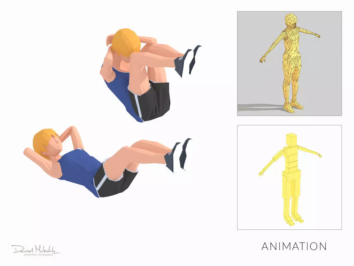 Crunch Exercise Woman Animation Low-poly 3D model