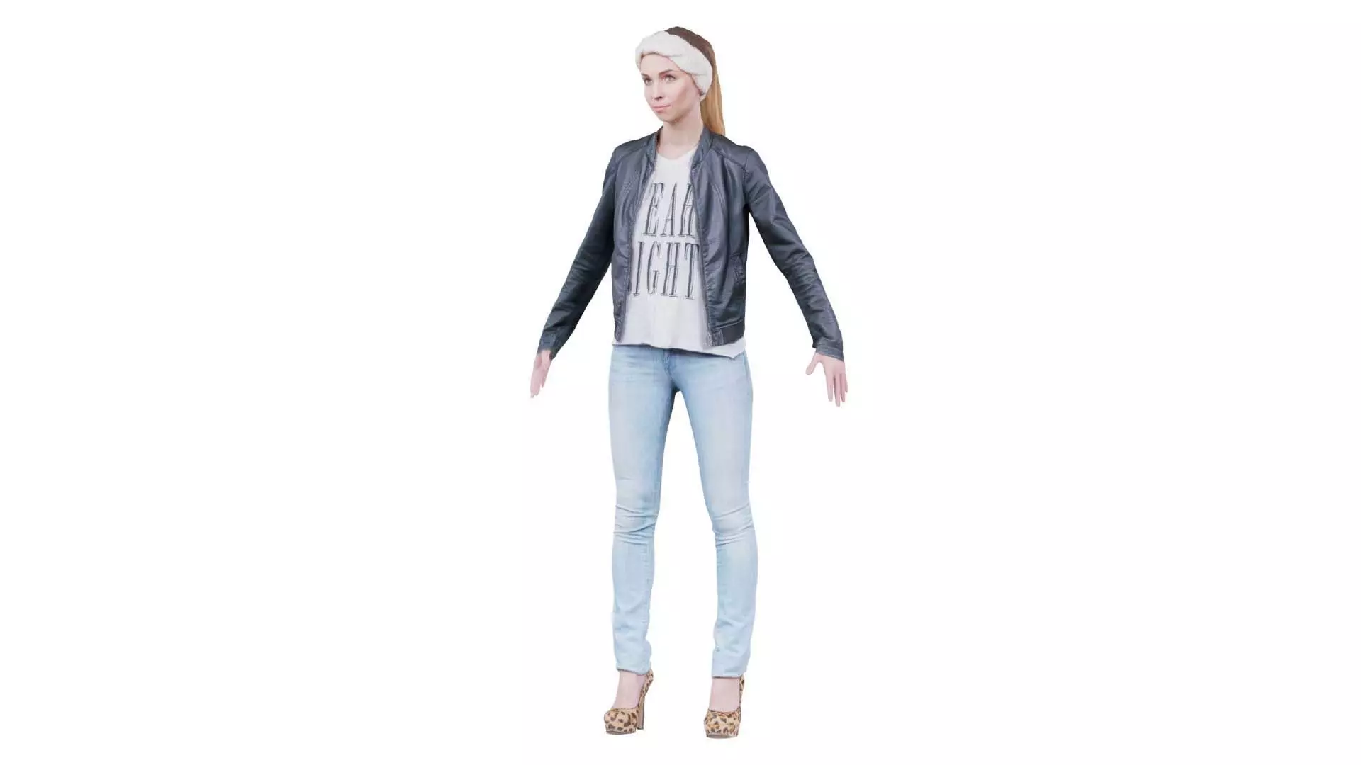 Polygonal Miniatures presents cute woman in jeans leather jacket and bandana standard pose, a model from our 3D scanned catalogue. The model, a woman in jeans and a jacket standing with her arms out, is obtained by photogrammetry, and scanned using SLR camera's.Processing takes place in Zbrush and Photoshop and the resulting 3D model has unwrapped, non overlapping UV's, and a texture and normal map. Before publishing, we make sure the model has real world scale (meters), correct shader setup and is centered at the origin.Apart from the various file formats, we also offer a Blender file with material and textures set-up, ready for export and rendering. More info can be found below: