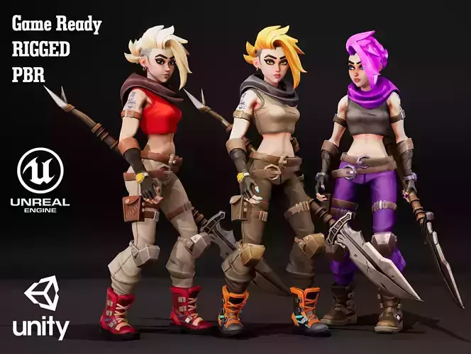 The images are rendered in UE4Game low-poly Desert Rouge Female 01
