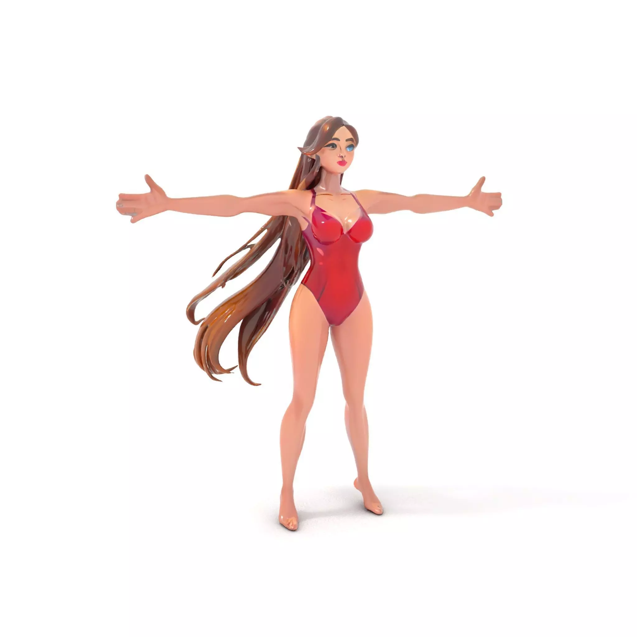 This dynamic swimsuit character model is perfect for game developers and illustrators seeking a high-quality female avatar. Each model has 3 levels of detail: low-poly (1000 triangles for mobile), middle-poly (10,000 triangles for environment), and high-poly (100,000 triangles), which allows for the use of this model in production rendering (such as 3ds max, Maya, Cinema4D, Blender, Vray/Corona/Cycles and all other), game engines (Unity and Unreal compatible), and interactive presentations, providing a choice of detail based on the LOD System principle. Ideal for beach scenes, virtual fashion shows, or promotional animations, this model brings a vibrant and lively presence to any project. The model's textures are PBR, Diffuse, NormalMap, and reflection/roughness/metallic, which are suitable for any modern rendering engine. All models accurately unwrapped and have no overlapping UV. All textures are 4096*4096 in size. If you like the model, please leave a comment and like!