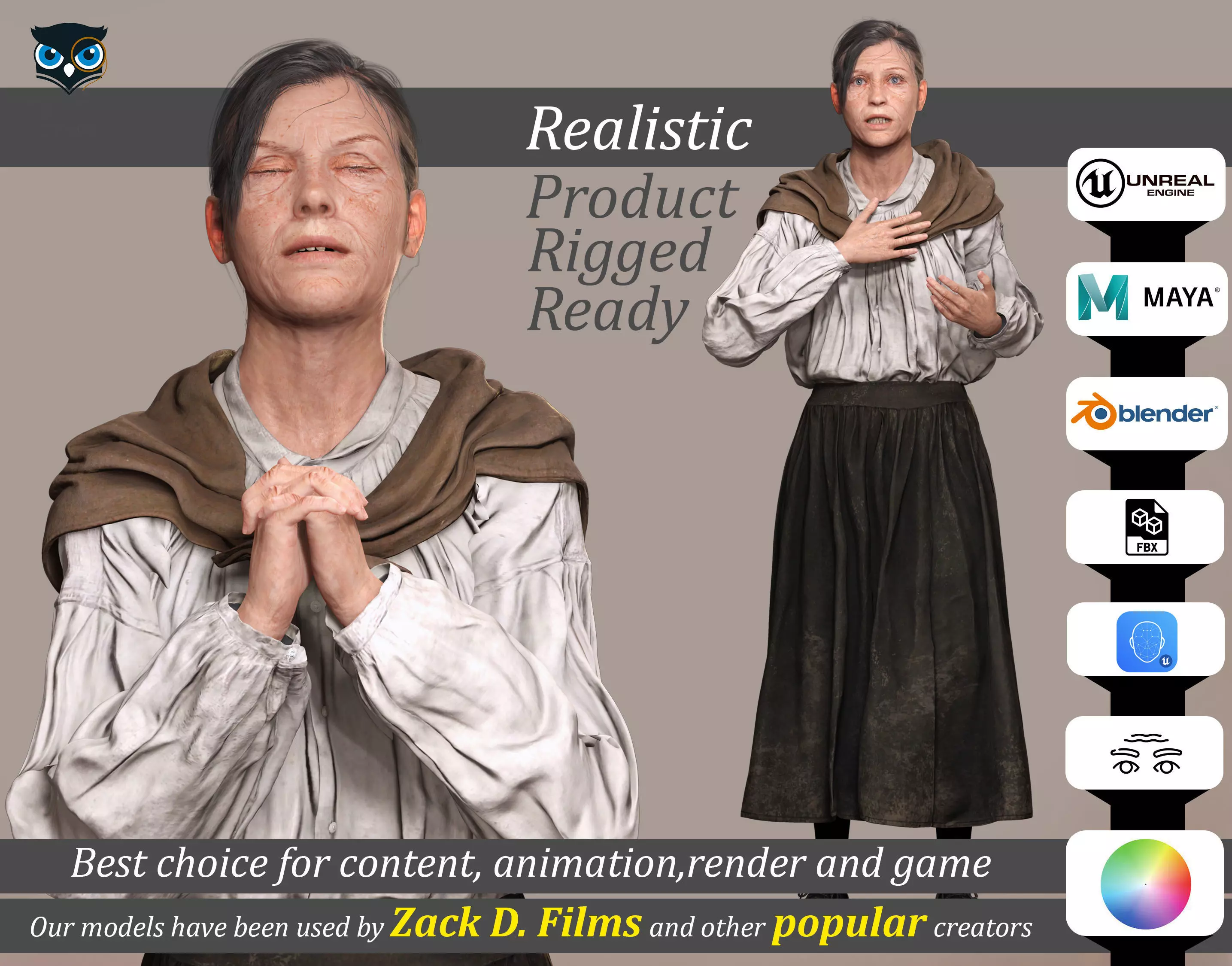 Our models have been used by Zack D. Films and other popular creatorbest choice for content , animation , render and gamerigged and skind for real time purpose , no cloth simulation full rigged