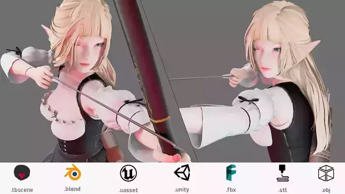 Elf Archer - Female Character - Blender UE5 Unity 40 animations Low-poly 3D model