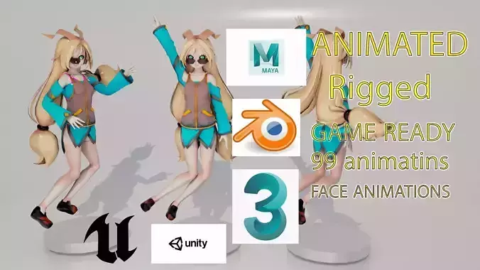 +FBX folders contain all clothes you can easly change all colors.+.maya file for all maya versions with full shaders and armature setup+Skinning in maya, full body rig and basic facial rig.Textures can be found in this textuers RAR Fileanimations can be found in this animations RAR Filefaces 15271verts 11170DONT FORGET TO RATE 5 STARS