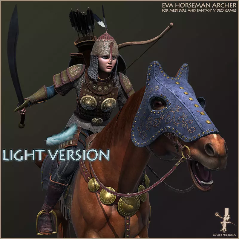 Low polygonal game ready rigged model of Medieval Archer Horseman with Horse in 3D MAX file.Character is perfect for a first person or 3rd person adventure game. May fight as warrior, archer, rogue...It come with many animation, and textures, but Character Controller NOT included!