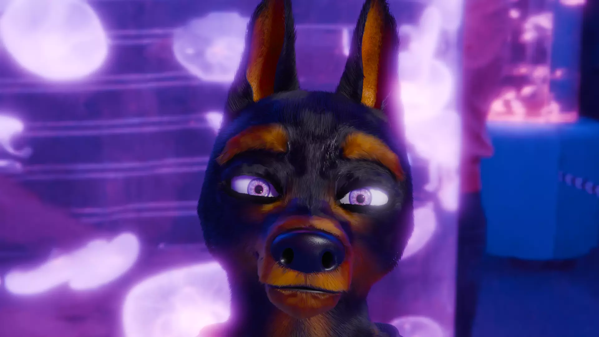 3D model of a Doberman made in Blender named Evva.