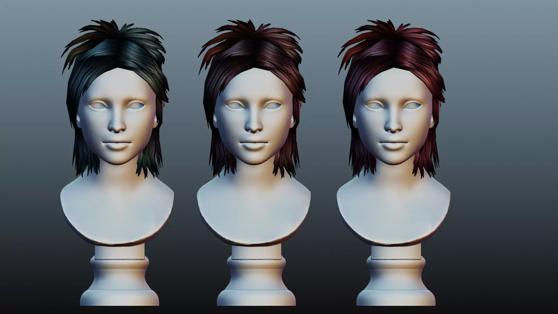Female hair 3 color Low-poly 3D model