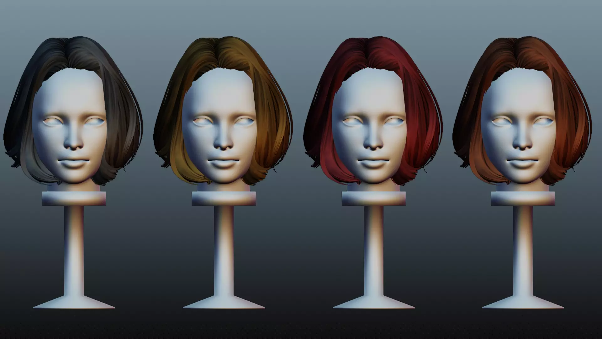 Female hair 4 color Low-poly 3D model