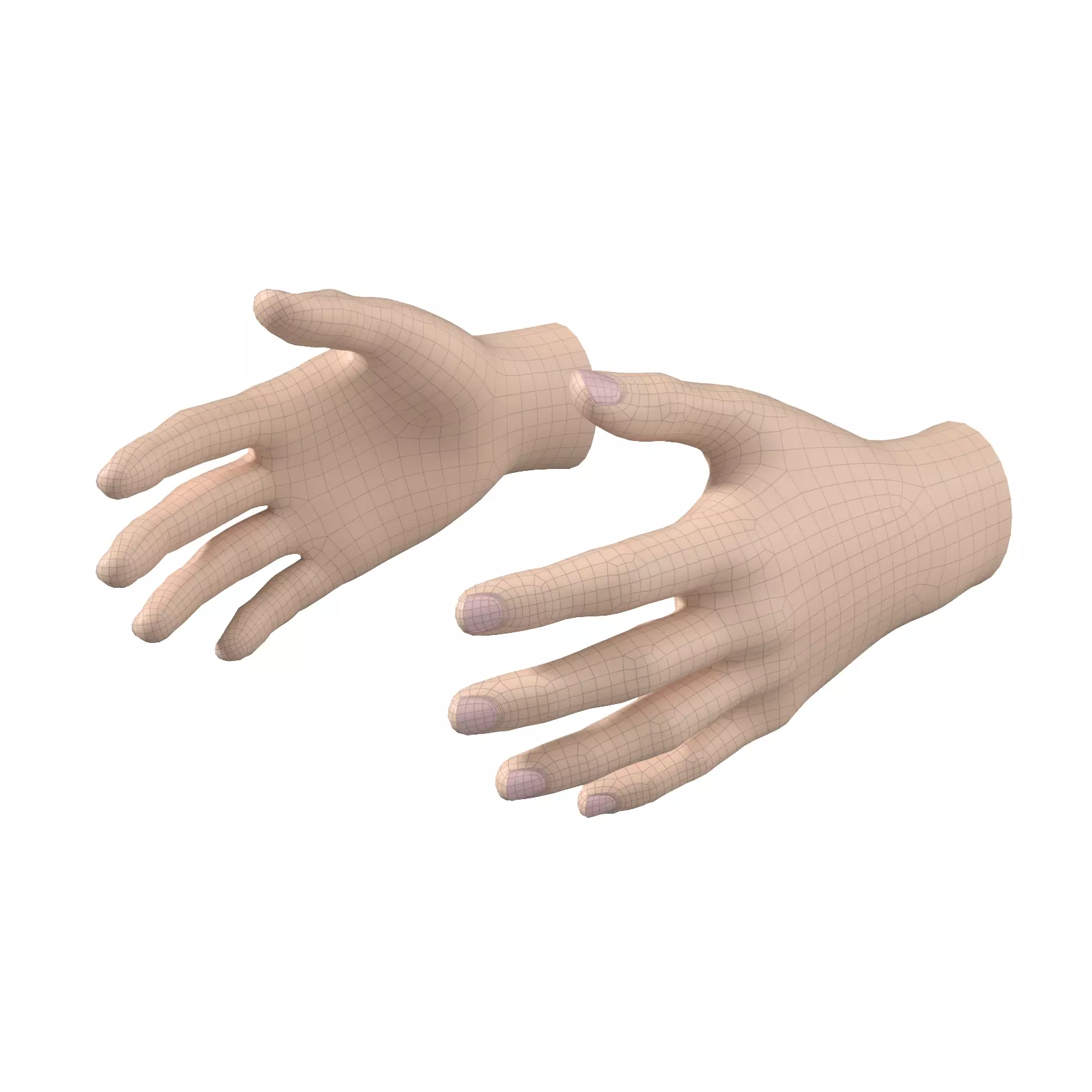 3D model of of female hands in relax neutral pose, as low-poly base mesh.