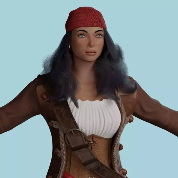 Female PirateThis is a 3d model of Female PirateOriginally created with ZBrush 2018 and Blender Render in blender cycles Blender cycles camera and lights includedMay be used for films,games,VR worldimages don't has any post effectThe character was modeled in real-world scale with ideal proportions. Height of character is 170 cmMUST HAVE Blender 2.79b and Zbrush 2018|| FEATURES ||