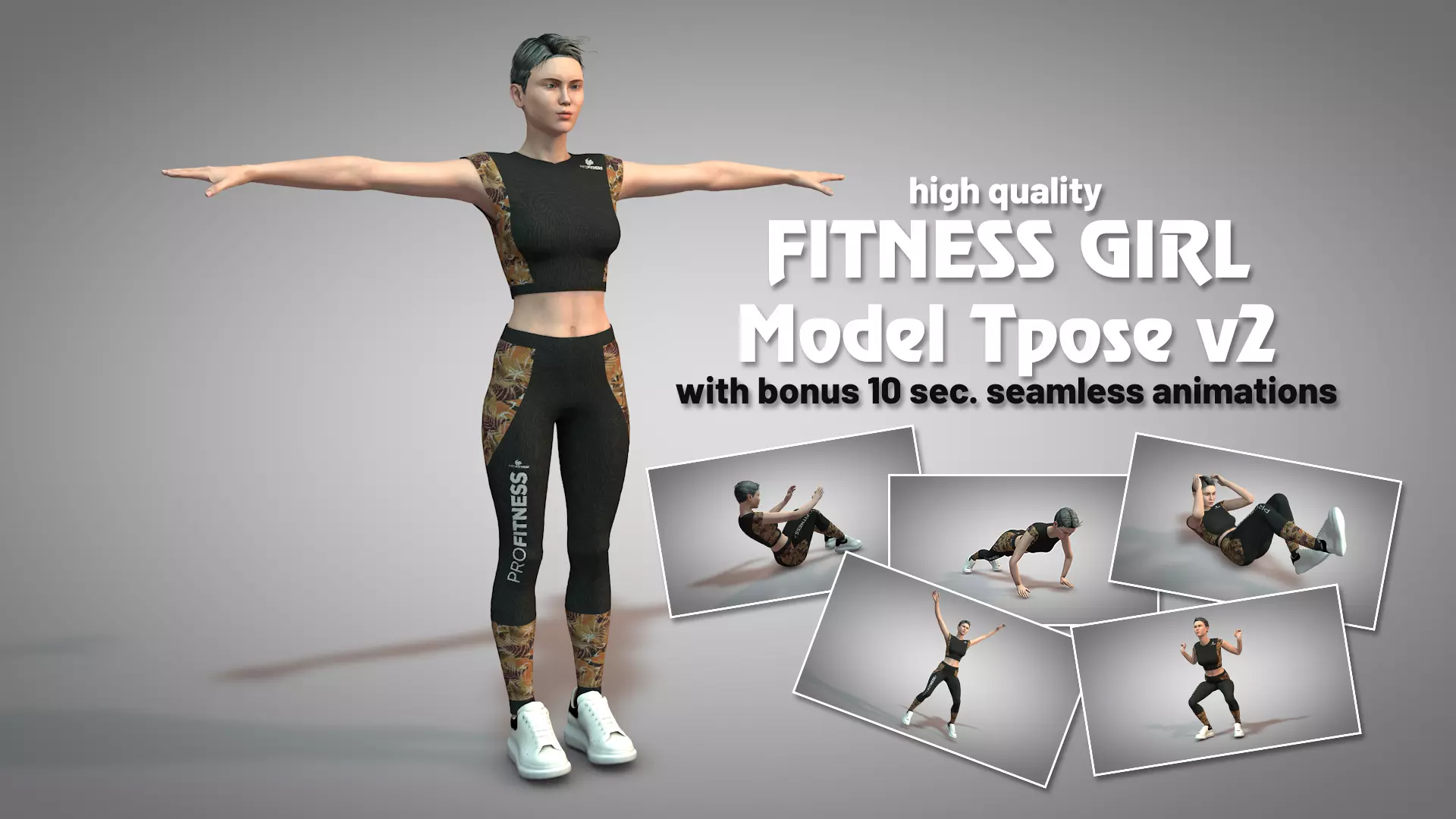 fitgirl2_PushUp.FBX is a 10 sec./300 fr. seamless animation. Textures are in the TEX folder.