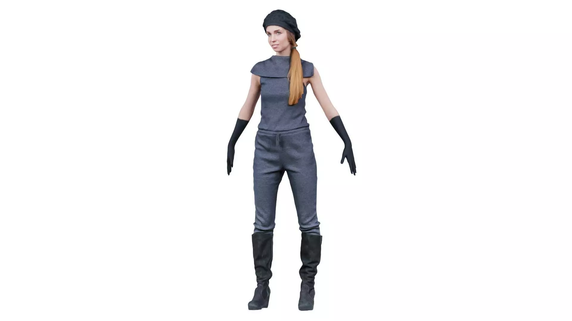 Polygonal Miniatures presents futuristic woman standard pose, a model from our 3D scanned catalogue. The model, a woman in a gray jumpsuit and black gloves, is obtained by photogrammetry, and scanned using SLR camera's.Processing takes place in Zbrush and Photoshop and the resulting 3D model has unwrapped, non overlapping UV's, and a texture and normal map. Before publishing, we make sure the model has real world scale (meters), correct shader setup and is centered at the origin.Apart from the various file formats, we also offer a Blender file with material and textures set-up, ready for export and rendering. More info can be found below:
