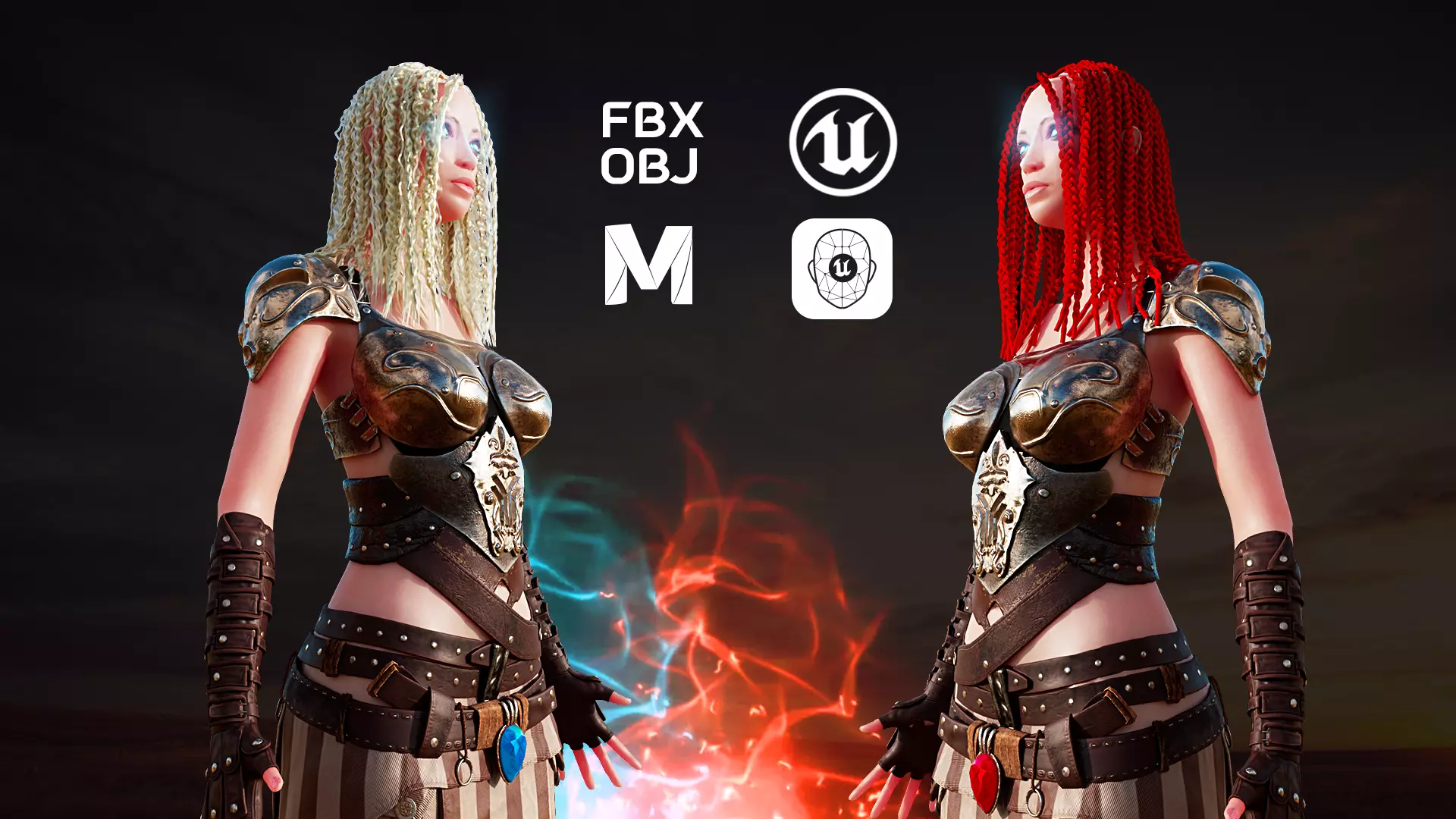 xGen EyelashesModularRender scenes in Unreal Render and animted scenes in MayaThird person bluprints for every characterRigged with UE5 Rig50+ Apple BlendshapesAdjustable colors and dress partsUnderwear includedAdvanced materials and Customizations