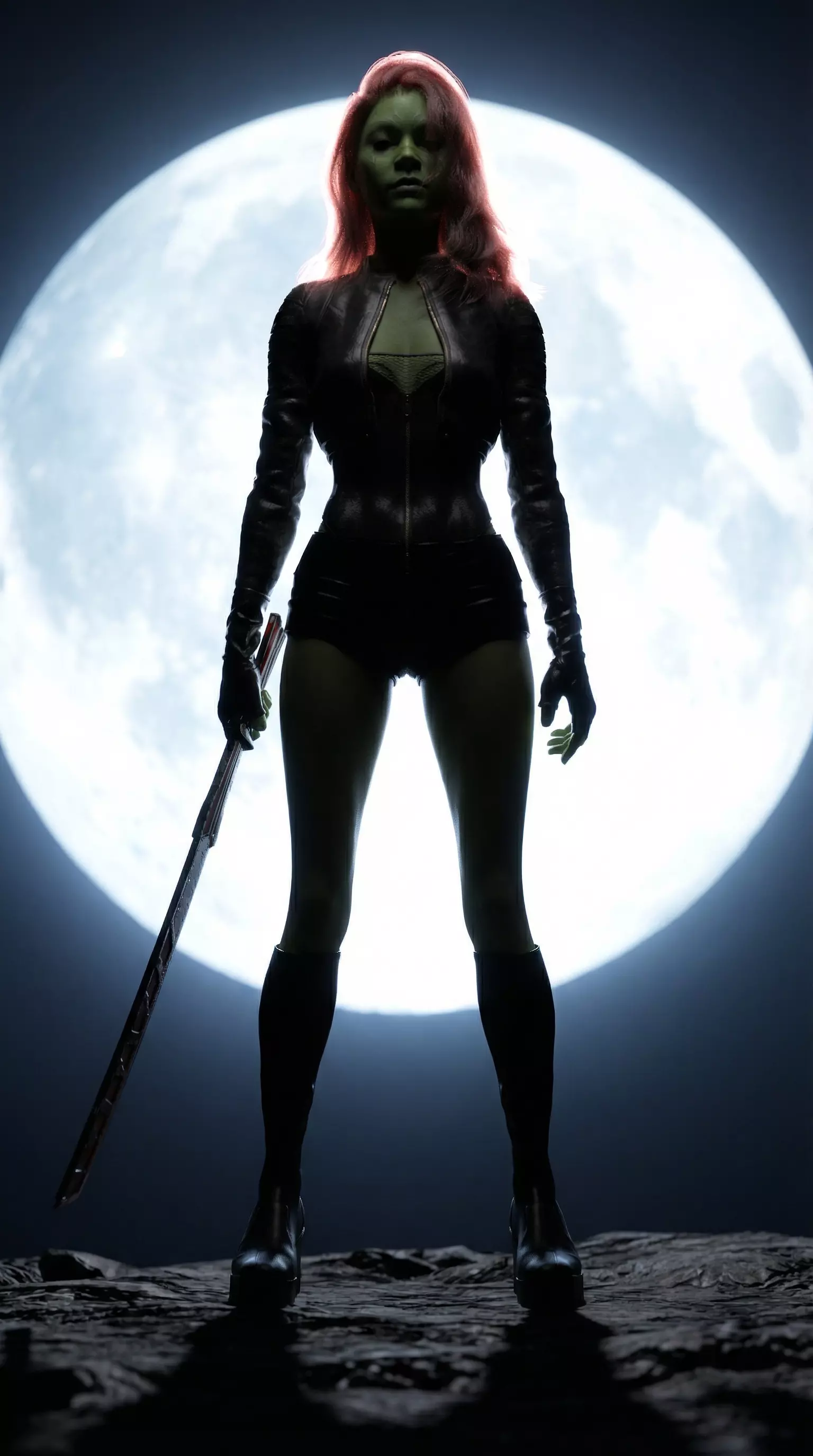 Introduce the deadliest woman in the galaxy, Gamora, into your project with this high-fidelity 3D model. This version features a stylized, modern Urban Combat look, combining her signature green skin and red hair with sleek, black biker-inspired apparel.
